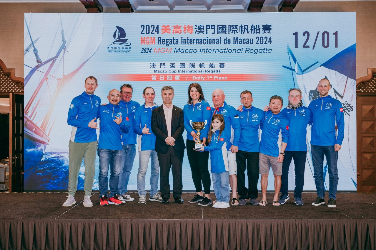 主办单位于本日赛事结束后举行了单日奖项颁发仪式,出席嘉宾包括体育局局长潘永权、美高梅品牌策划助理副总裁凌蕙金、北斗星航海赛事管理董事长马文伟、世界帆船联合会主席李全海、北斗星航海赛事管理代表李红斌等。