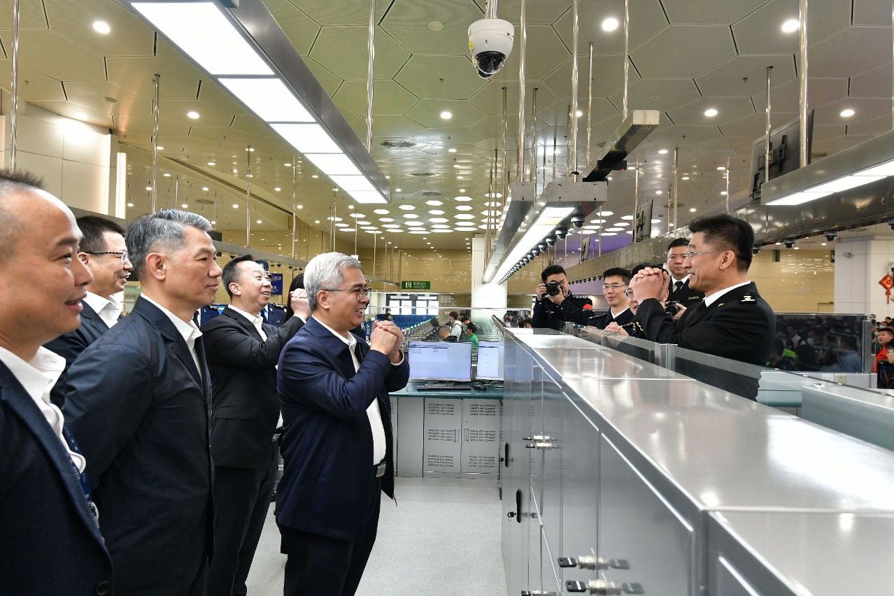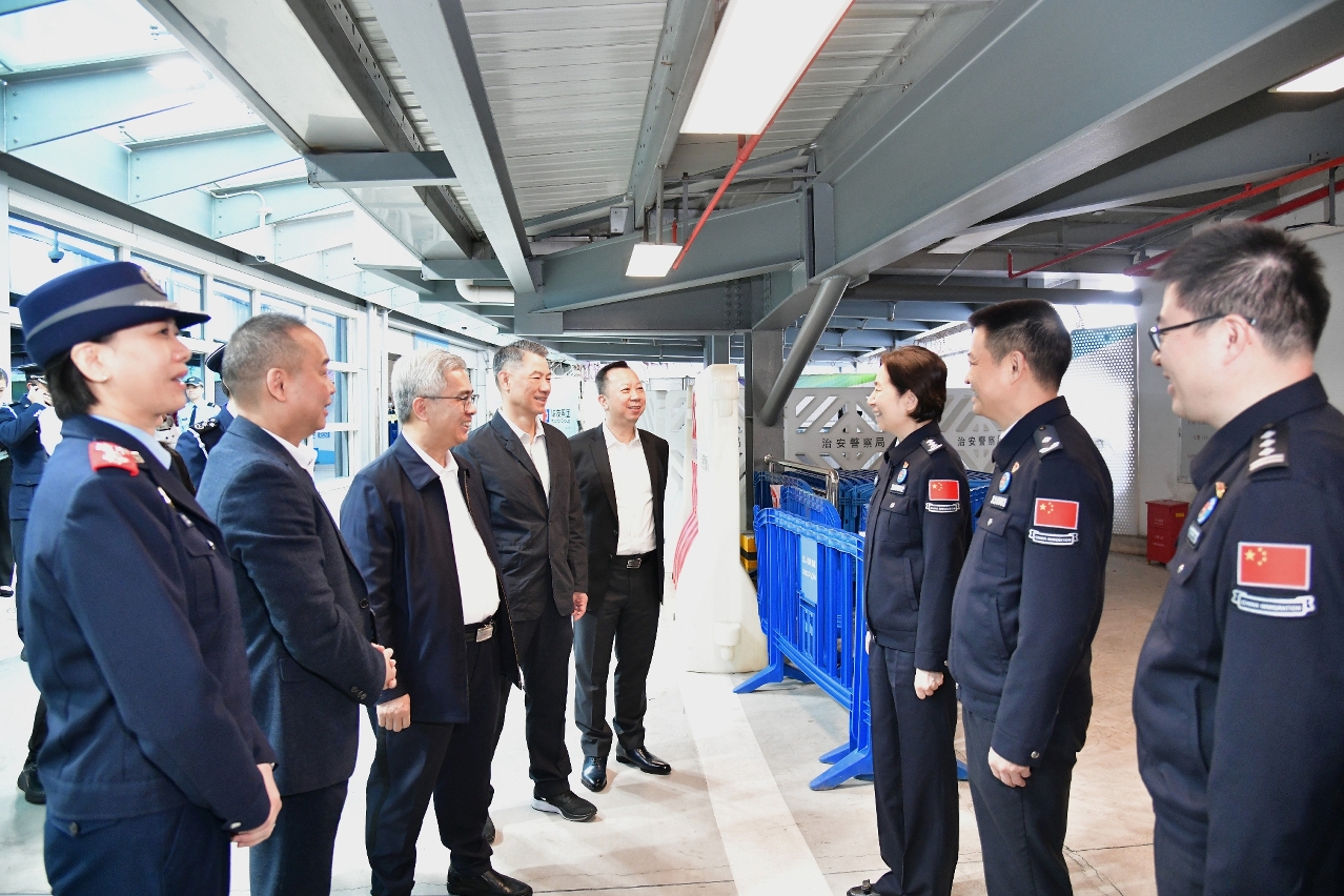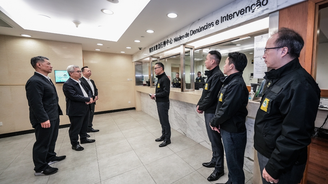 保安司司长先后到关闸、港珠澳大桥及横琴口岸澳门口岸区出入境事务站,以及海关查验区,视察各口岸通关、出入境车道运作、分流和便民措施的安排及关检运作情况,期间,保安司司长与内地边检及海关领导进行工作交流,并互致新春祝福。接着前往司法警察局报案及紧急行动中心,了解春节期间案件接收及侦查情况,黄司长指示所有人员需时刻保持警惕,加强防范及打击各类不法行为,严防不法分子于新春期间伺机犯案。