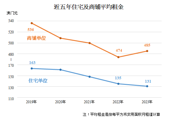统计暨普查局资料显示,2023年全澳住宅单位每平方米实用面积平均租金为131元(澳门元,下同),按年下跌3.0%,与2019年比较跌幅为19.6%,显示疫情对住宅租金有较大的影响。在较多申报租约的分区中,黑沙环及佑汉区(123元)、新口岸区(111元)、氹仔中心区(131元)的平均租金按年分别下跌5.4%、4.3%及3.7%,黑沙环新填海区(154元)则上升1.3%。