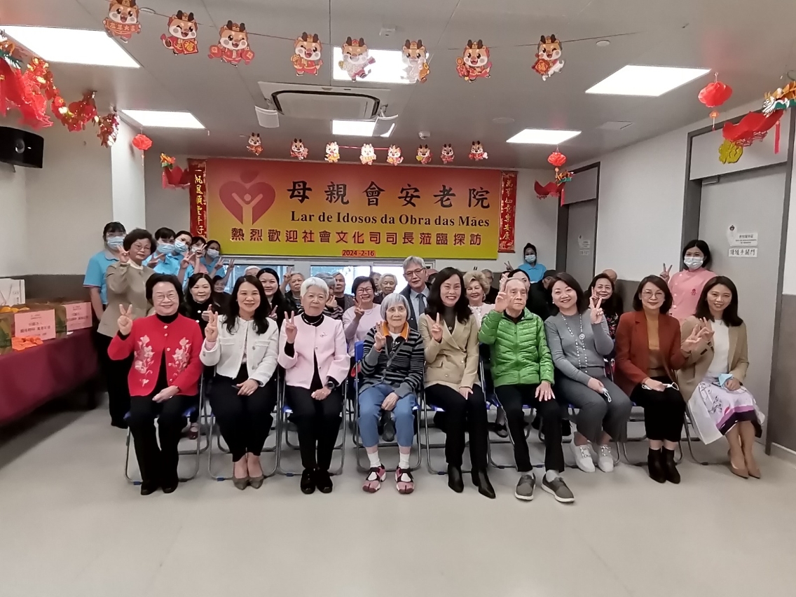 欧阳瑜司长首先前往母亲会安老院,参观了院舍内的阅览阁、物理治疗室、长者住宿房间、小型空中花园、活动区、综合活动室等。该院舍的配套设施完善,在院舍人员的悉心照顾下,有助长者提升生活质素,享受耆年生活。藉农历正月初七人日,欧阳瑜司长向院舍长者送上佳节祝福,并与长者亲切互动,合唱贺年歌曲《欢乐年年》,气氛欢乐愉快。她表示,长者过去为本澳社会作出很多贡献,现时更将人生经验和故事与后辈分享,让后辈获益良多。随着本澳人口老化,特区政府在未来会兴建更多长者服务设施,为本澳长者提供适切的照顾与支援。
