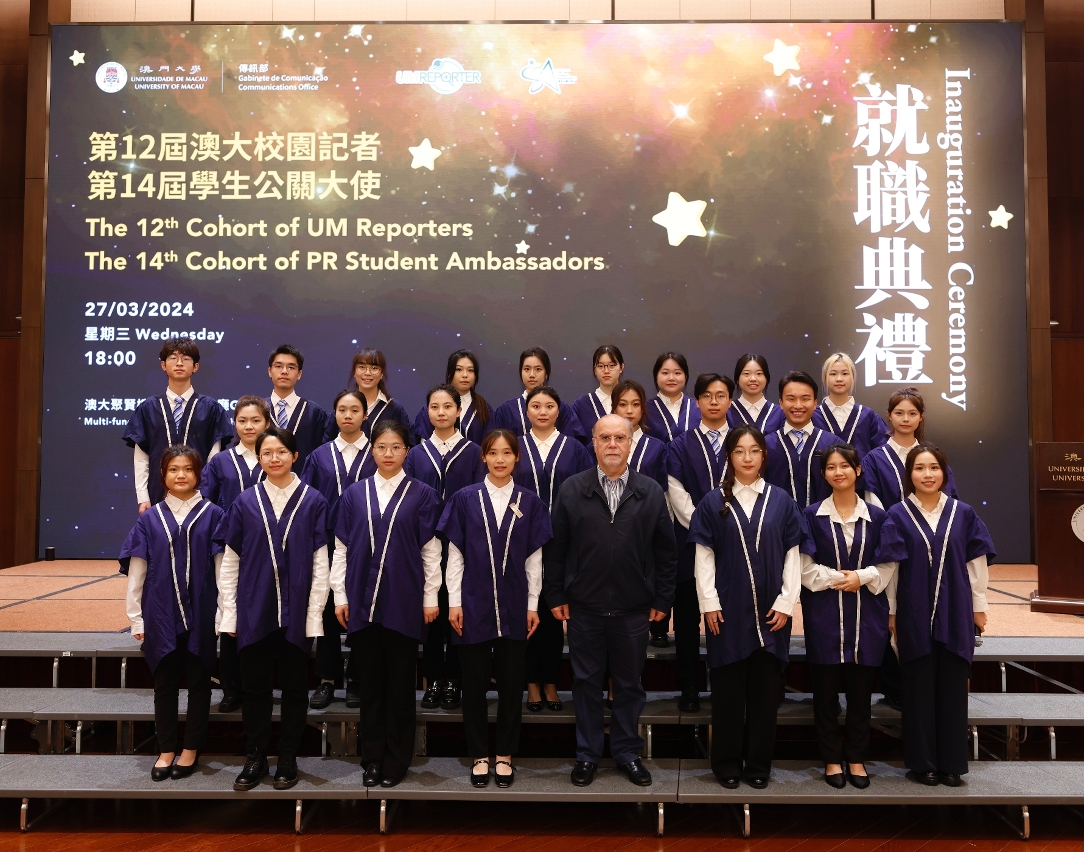 澳门大学第12届校园记者和第14届学生公关大使举行就职典礼。今届共有63名校园记者和学生公关大使就职,并有20名表现突出的学生获颁发“十大杰出校园记者"及“十大杰出学生公关大使"奖状,同场亦向“融媒体学生实践平台"合作单位颁发证书。
