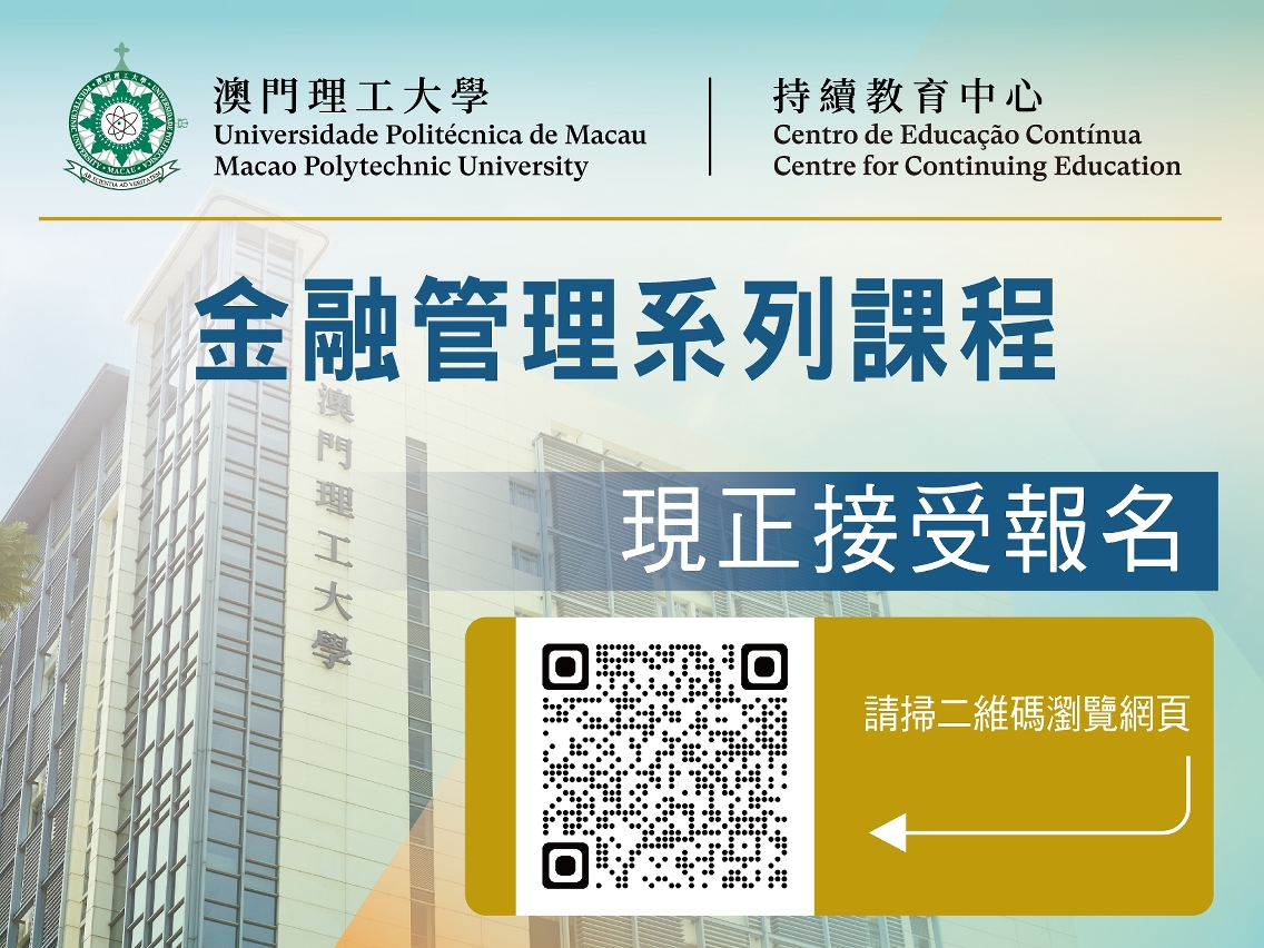 现代金融是澳门特区“1+4”经济适度多元发展策略的重点产业之一,澳门理工大学持续教育中心为积极回应社会发展所需,培养金融产业所需人才,5月份起开设相关范畴课程,“金融科技与创新实践”、“金融工具与市场应用”、“债券市场实务”、“金融投资理论与实务”等课程,现正接受网上报名,适合金融从业人员、有意投身行业发展,以及对金融理论与实践感兴趣的人士报读。