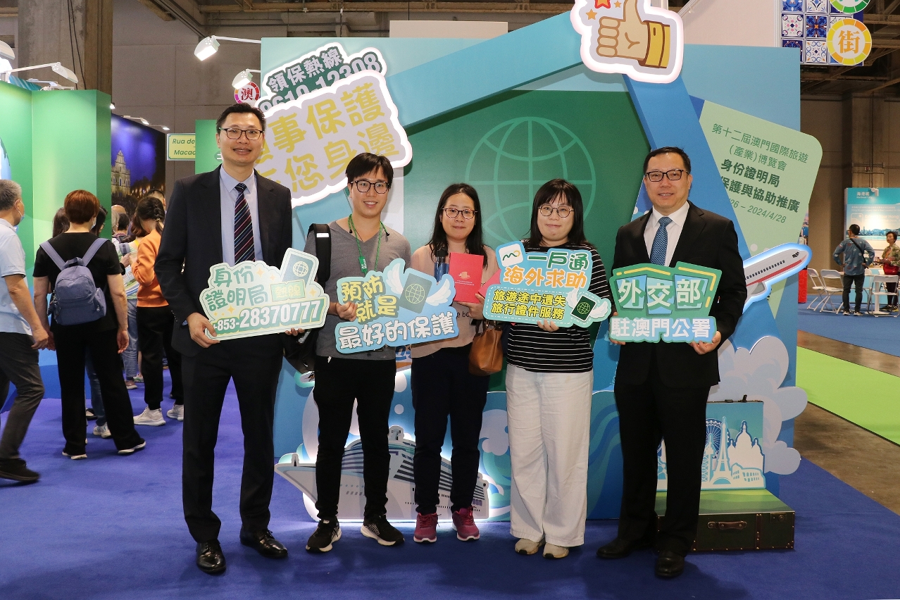 在外交公署的指导下,身份证明局每年均参展“旅博会”,积极向居民推广领事保护,今年除了设置特色展位,更首次与外交公署及旅游局合办“平安澳游”—澳门居民出国游领事保护与协助全民篇宣介活动。外交公署副特派员孙向阳致辞时表示高度重视澳门同胞在海外旅行期间的各项安全,始终秉持“以人民为中心”的宗旨,积极践行“外交为民”理念。身份证明局局长周伟迎及旅游局局长文绮华均表示冀宣介活动让居民加深认识领事保护,提前了解海外求助资讯,提高外游安全意识。