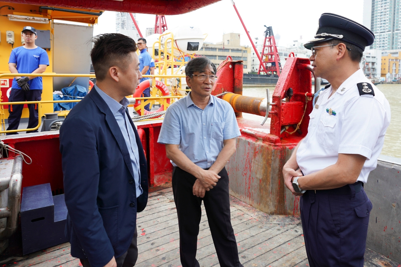 因应休渔期临近,目前已有约60艘渔船在内港停泊。探访期间,各相关部门代表向渔民派发各类宣传海报和小册子,海事局亦在渔船当眼处张贴救援通讯资料,包括海上防火和救援紧急联系电话以及无线电频道等。