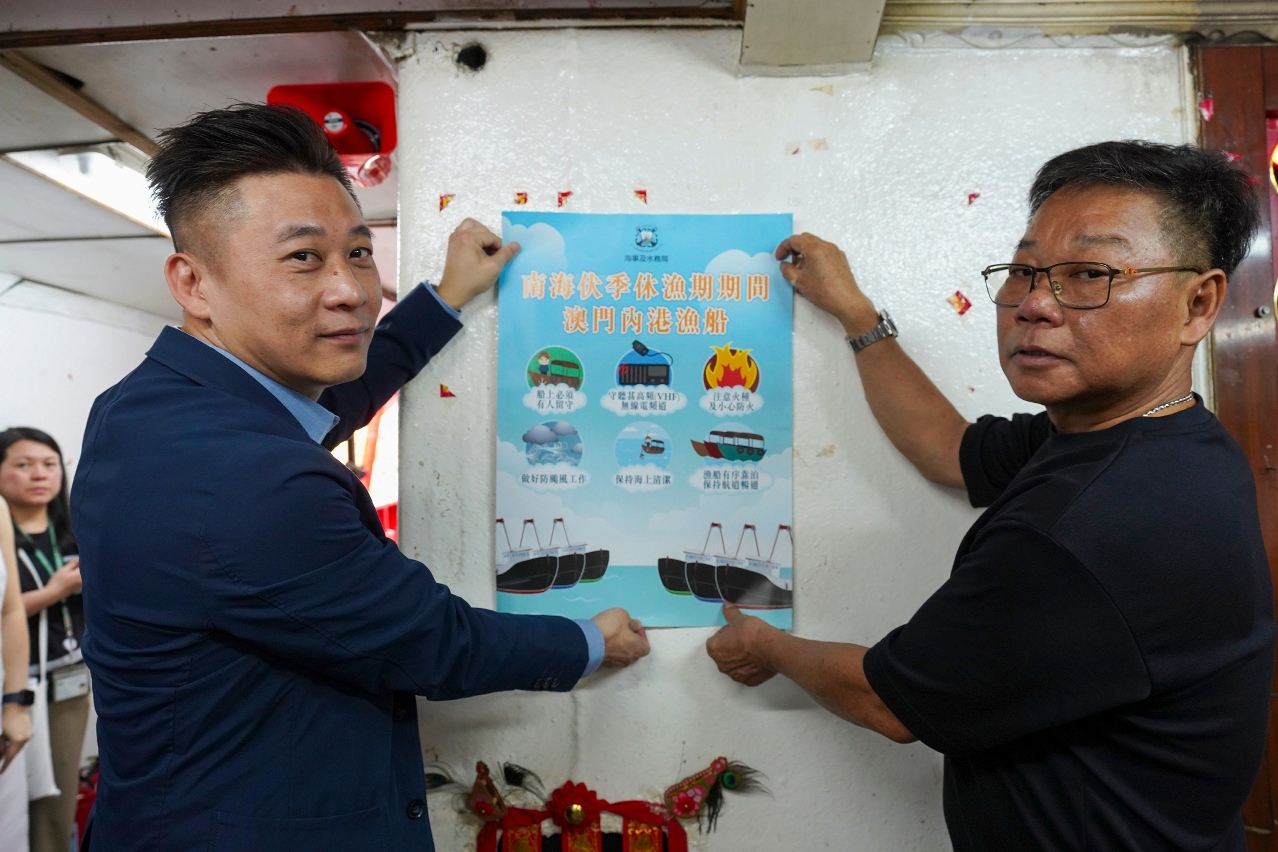本年度南海休渔期于本年5月1日中午开始,至本年8月16日中午结束,为期三个半月。海事及水务局日前联同警察总局、海关、消防局、市政署、卫生局以及渔民团体代表登船拜访渔民,宣导防火、防风、防污、防盗、防疫等信息。海事局提醒渔民业界务必遵守内港停靠的应遵规则,做好五防措施,共同维护海上环境安全。