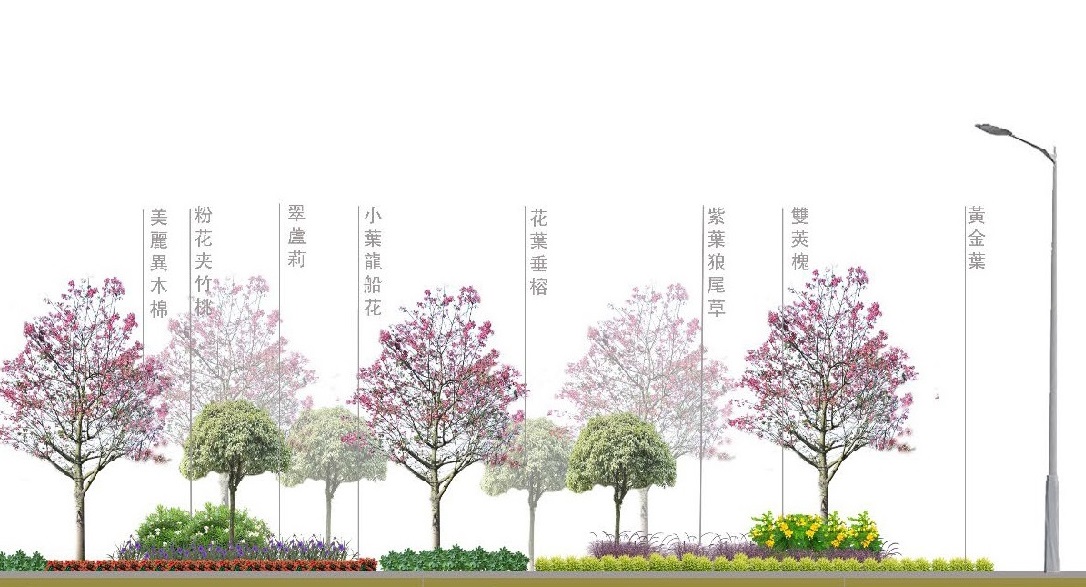 市政署积极有序在本澳主要交通干道、举办重要活动庆典位置周边的绿化区域进行重整。当中由于邻近澳门国际机场及澳门东亚运动会体育馆的航空圆形地、机场大马路(近上葡京一段)和莲花路(近澳门东亚运动会体育馆一段)的绿化区域植栽单一且部分植物生长不良,故将对有关路段进行绿化重整,并适当回收及移植健康的植物到其他合适地点。是次重整以“彩带”和“莲瓣”为设计主轴,透过种植不同品种和色彩的植物,如日日樱、美丽异木棉、翠芦莉、花叶大红花、双夹槐、彩霞变叶木、射干等,亦以堆砌土丘的方式打造出具四时变化的绿化景观,为本澳主干道添加庄重及具层次的景观效果,寓意澳门欣欣向荣。