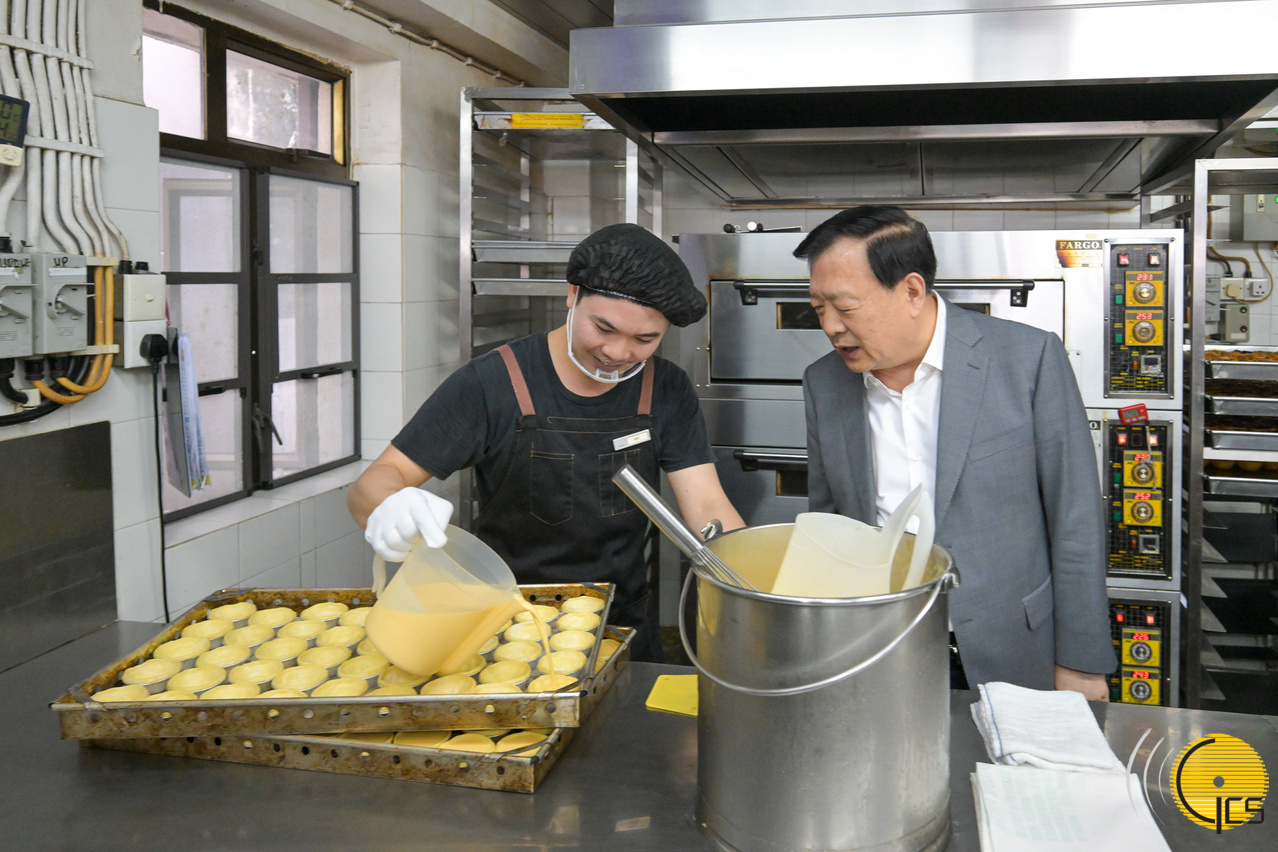 在路环市区参观期间,瞭解本澳非物质文化遗产项目“葡挞制作技艺”。在荔枝碗船厂片区参观期间,分别听取文化局局长梁惠敏讲解荔枝碗的历史、片区的整体方案及修复内容,感受船厂活化后浓厚的文化氛围。夏宝龙主任与现场文创市集摊主交流并予以鼓励,同时亦向造船老师傅瞭解造船工艺及历史。