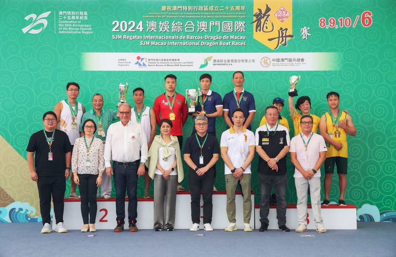 由体育局、澳娱综合度假股份有限公司及中国澳门龙舟总会主办,市政署及行政公职局协办的“庆祝澳门特别行政区成立25周年—2024澳娱综合澳门国际龙舟赛”,今(8)日在南湾湖水上活动中心举行首日赛事,公开组赛事,经一轮角逐后,消防局夺得澳门小龙赛公开组(200米)冠军,而女子组后冠则由澳门青少年发展协会-A夺得。明(9)日将举行澳门龙舟赛标准龙(500米)公开组及女子组赛事。