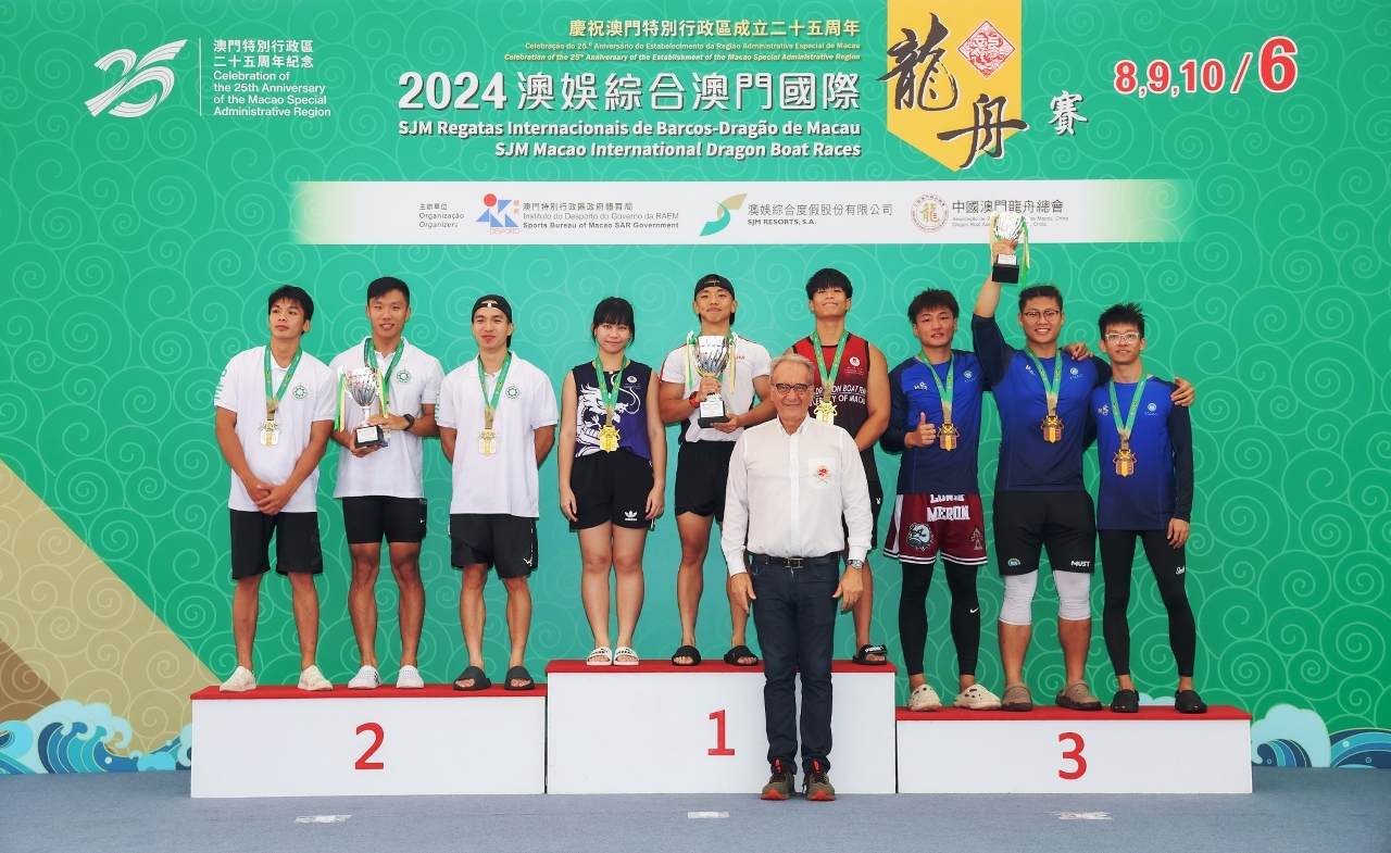 出席赛事的颁奖嘉宾有体育局局长潘永权、澳娱综合度假股份有限公司董事梁安琪、中国澳门龙舟总会理事长黄家豪、国际龙舟联合会主席克劳迪奥.舍米、市政署市政管理委员会主席戴祖义、行政公职局局长吴惠娴、体育委员会委员张贵洪及赵文杜。