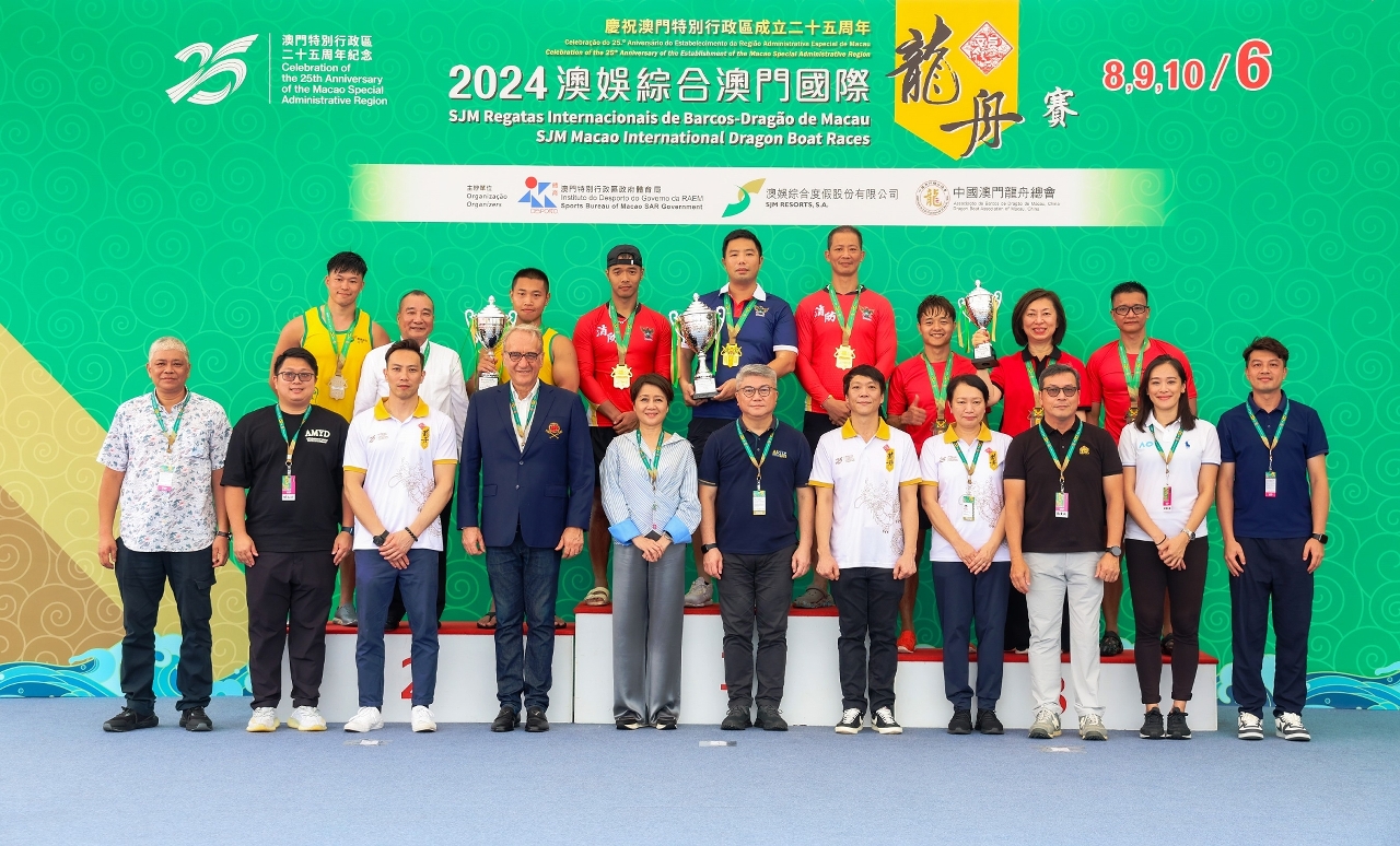 由体育局、澳娱综合度假股份有限公司及中国澳门龙舟总会主办,市政署及行政公职局协办的“庆祝澳门特别行政区成立25周年—2024澳娱综合澳门国际龙舟赛”,今(9) 日在南湾湖水上活动中心上演澳门标准龙公开组及女子组赛事。经过连场激战,消防局及澳门青少年发展协会分别继小龙赛公开组、女子组夺冠后,再次夺得澳门标准龙公开组及女子组冠军,而明 (10) 日端午节正日将进行多场精彩赛事,包括邀请赛标准龙公开组、女子组及大学生500米的赛事。