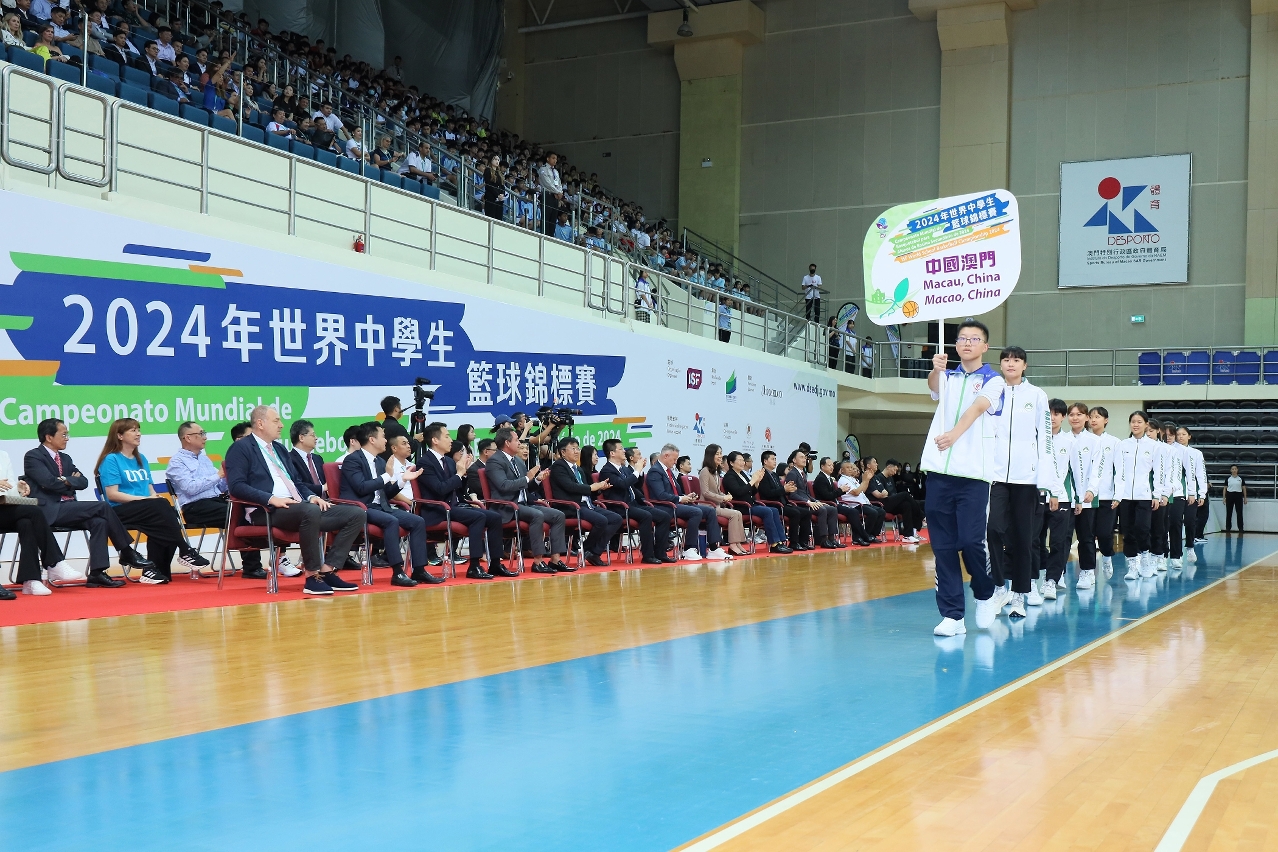 由国际中学生体育联合会(ISF)主办,教育及青年发展局承办的2024年世界中学生篮球锦标赛(“世中篮”)开幕式于6月24日在澳门塔石体育馆举行。澳门特别行政区行政长官代表、社会文化司司长欧阳瑜宣布2024年世界中学生篮球锦标赛正式开幕,揭开澳门首次举办国际性中学生篮球赛事的序幕。本届世中篮吸引来自20个国家和地区的37支队伍齐聚澳门角逐锦标。