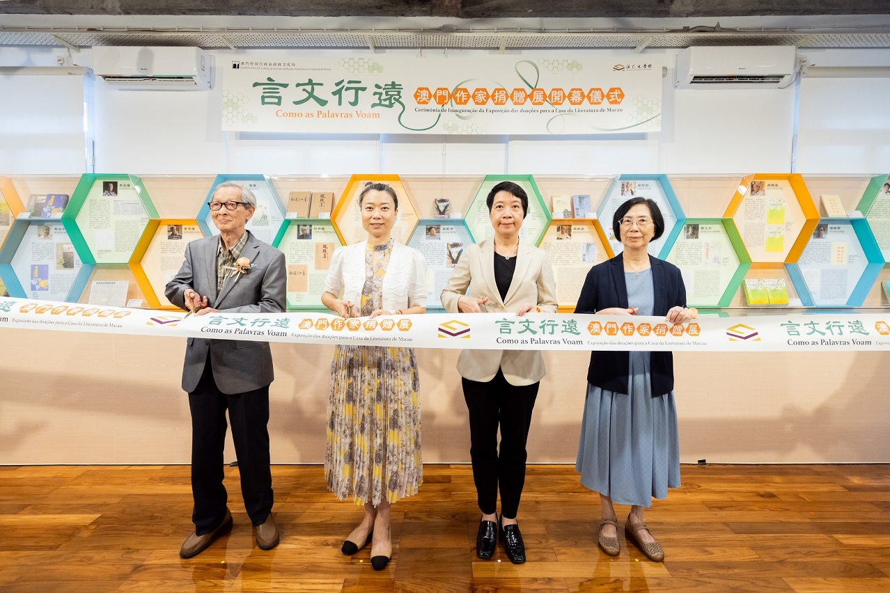 为致力推动澳门文学发展,展示本地文学力量,以及向各界捐赠者致意,文化局辖下澳门文学馆特别策划的“言文行远——澳门作家捐赠展”于今日(6月25日)在澳门文学馆举行开幕仪式,由文化局局长梁惠敏,中央人民政府驻澳门特别行政区联络办公室宣传文化部处长白冰,澳门笔会会长汤梅笑和澳门作家捐赠代表邱子维主礼,多位捐赠者及其家属代表出席观礼,文学界人士济济一堂,场面热闹。