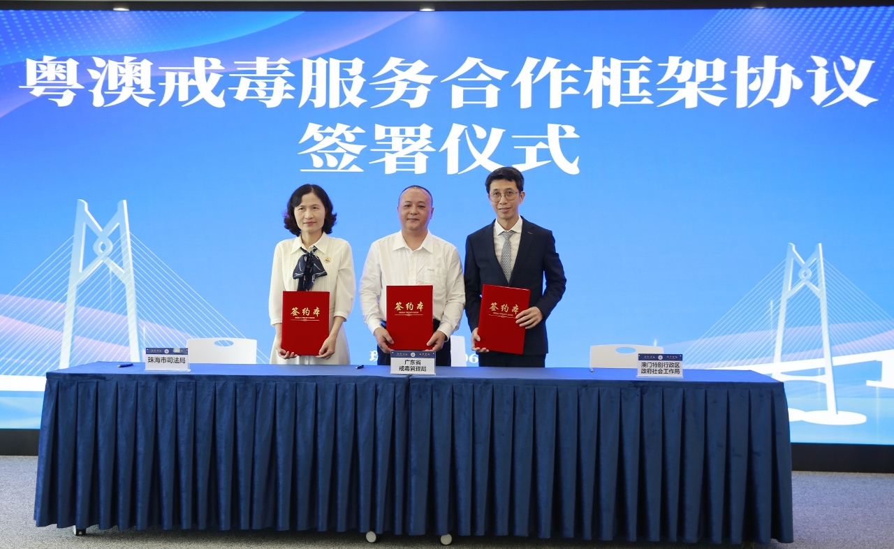 为推进粤港澳大湾区建设,持续深化粤澳在戒毒服务和禁毒普法宣传的合作,澳门特区政府社会工作局与广东省戒毒管理局、珠海市司法局于6月21日在横琴粤澳深度合作区涉外公共服务中心签署“粤澳戒毒服务合作框架协议”。