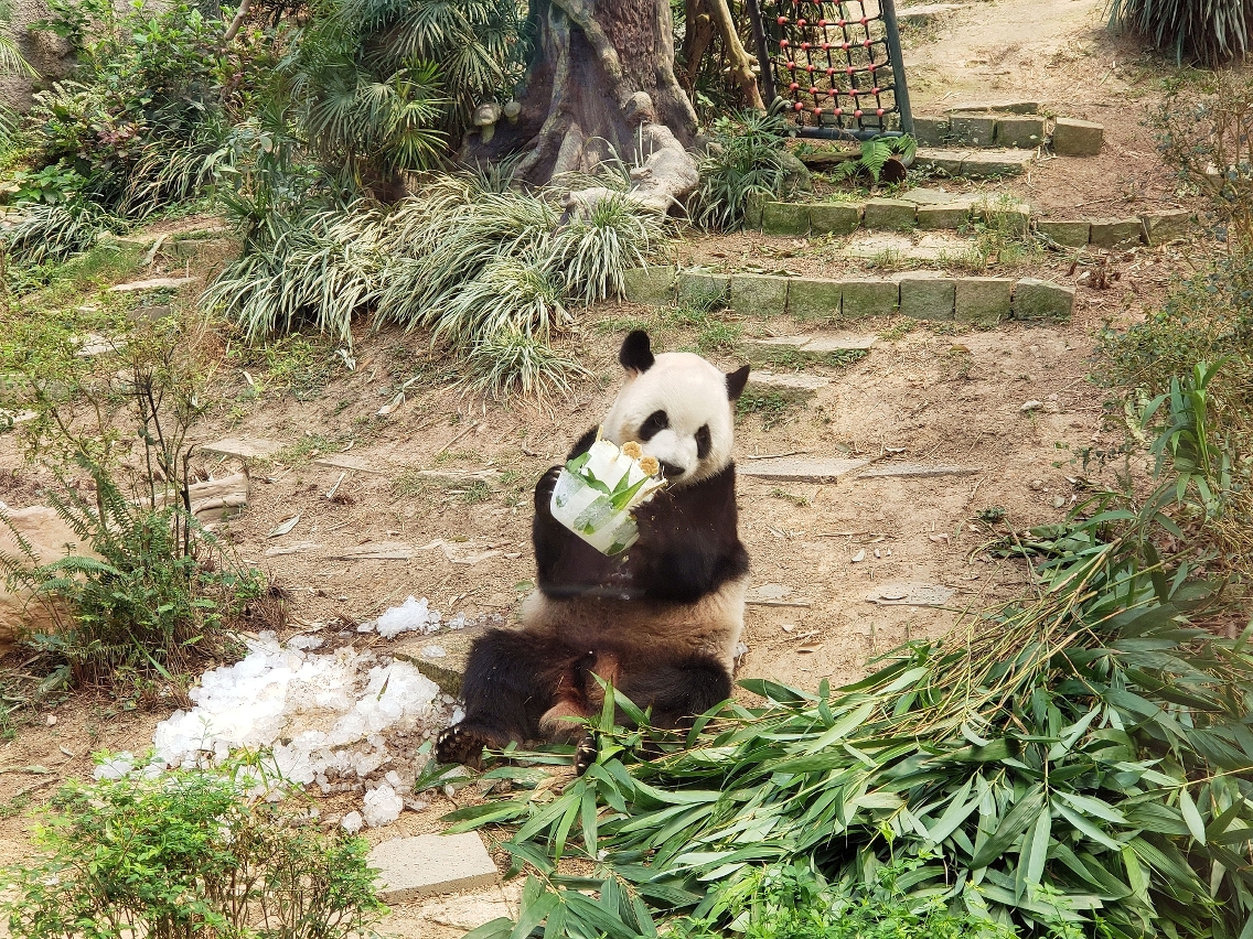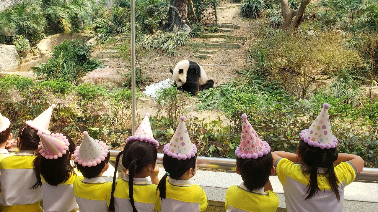 市政署于六月二十六日邀请石排湾公立学校约三十名师生,为大熊猫“健健”和“康康”庆祝八岁生日。饲养员特意制作了“冰生日蛋糕”,师生们合唱生日歌,共同为“健健”和“康康”送上真挚的祝福,场面热闹温馨。