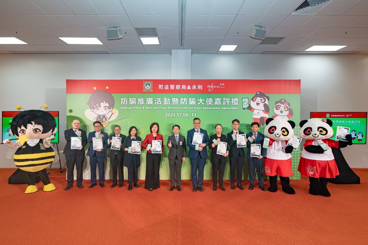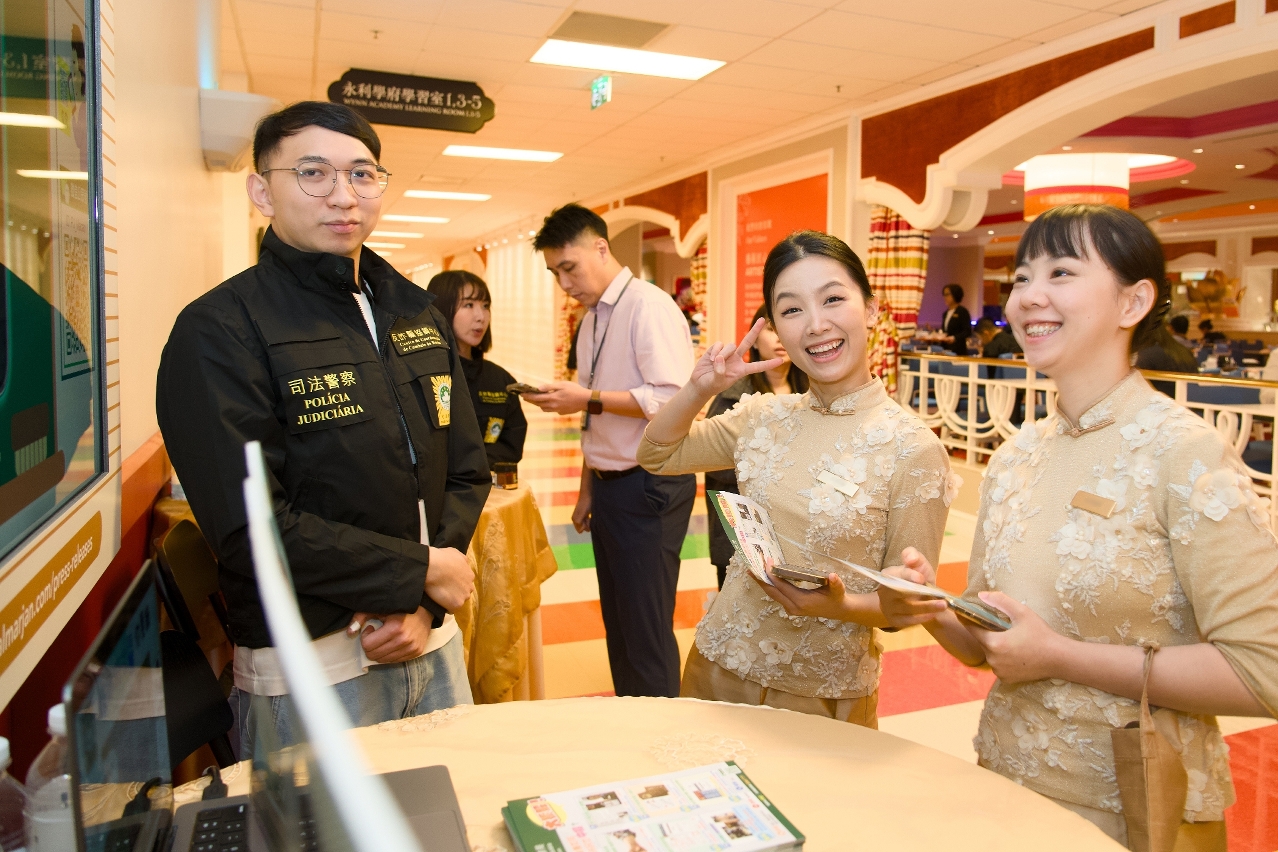 近年来部分旅游博彩业从业员不慎堕入电讯及网络诈骗陷阱,为切实增强业界的防范意识及能力,司法警察局应永利渡假村(澳门)股份有限公司邀请,日前共同合办“永利防骗推广活动暨防骗大使嘉许礼”,并在该企业旗下各娱乐场后勤区设置防骗互动体验及摊位游戏,吸引逾2,400名员工到场瞭解最新防骗资讯。活动上,司警局向8人授予“防骗大使"荣誉称号,以助局方在企业内部宣扬防骗讯息。