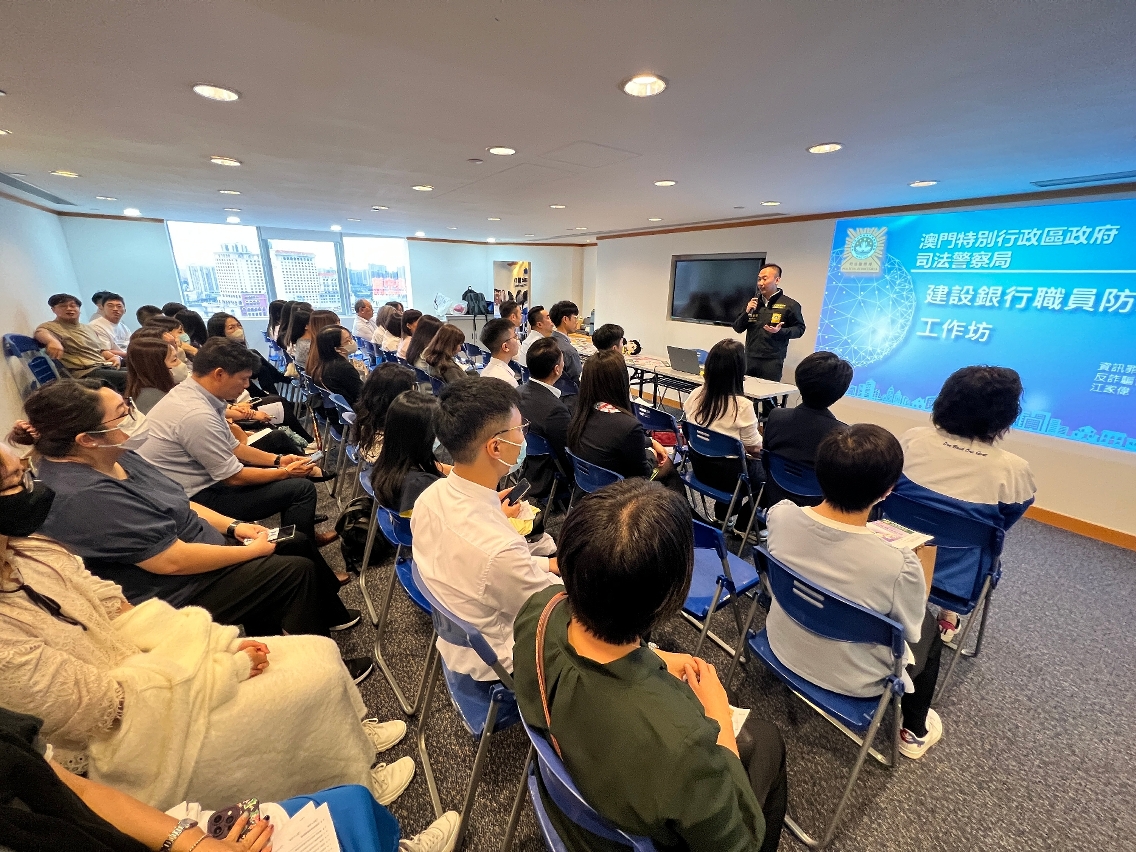司警局分别于6月24日、6月26日及7月5日在司警局总部,以及中国建设银行澳门分行、招商永隆银行澳门分行举办防骗工作坊,由司警局反诈骗协调中心人员担任主讲,共113名本澳银行工作人员出席。