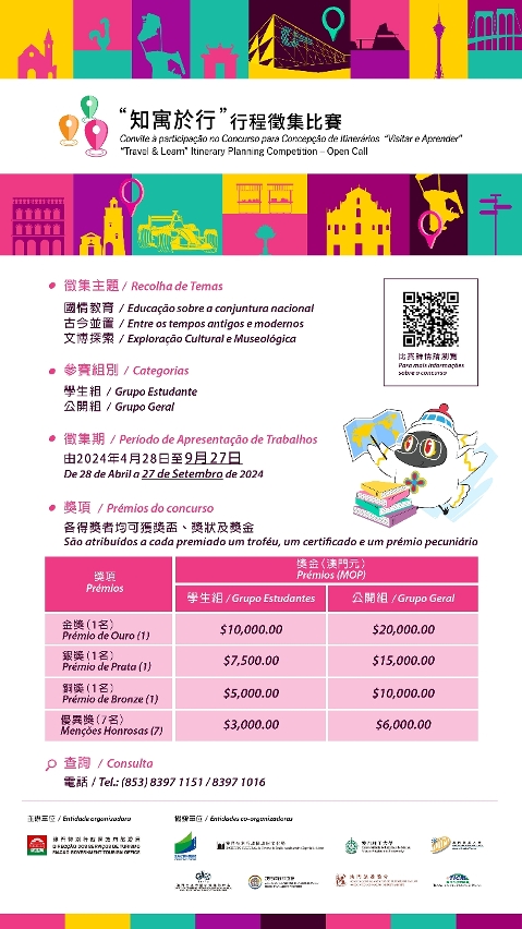 有兴趣人士可透过旅游局网页 https://ep.macaotourism.gov.mo/educational-tour-itinerary-contest-2024浏览活动章程和报名。