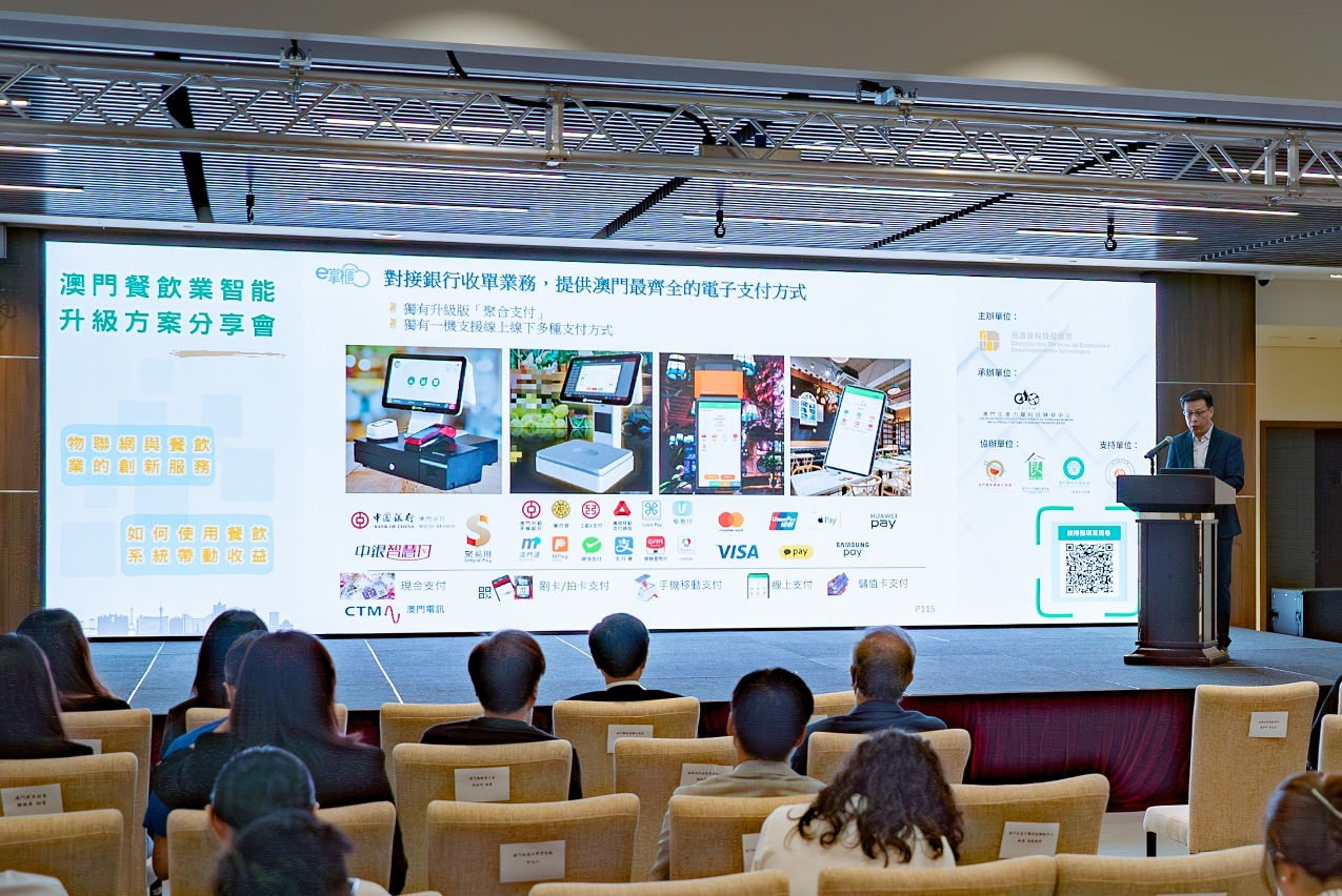 为向本澳餐饮业界介绍行业发展趋势和创新技术,由经济及科技发展局主办、澳门生产力暨科技转移中心承办的“澳门餐饮业智能升级方案分享会”已于7月30日顺利举行,逾90位餐饮行业代表出席,与专家共同探讨如何运用物联网技术和餐饮系统提升营运效益。