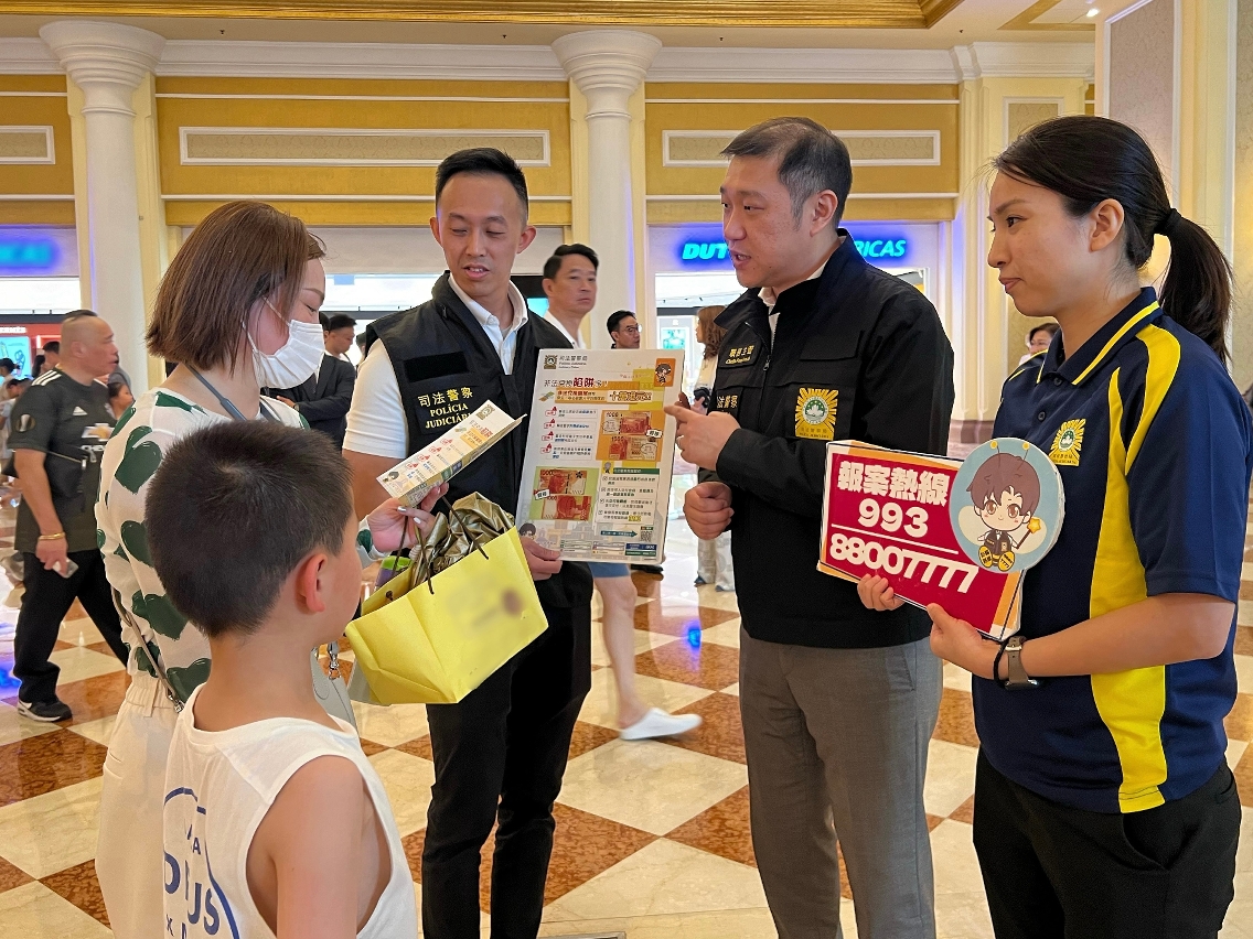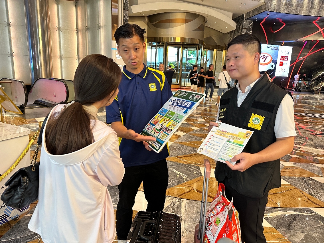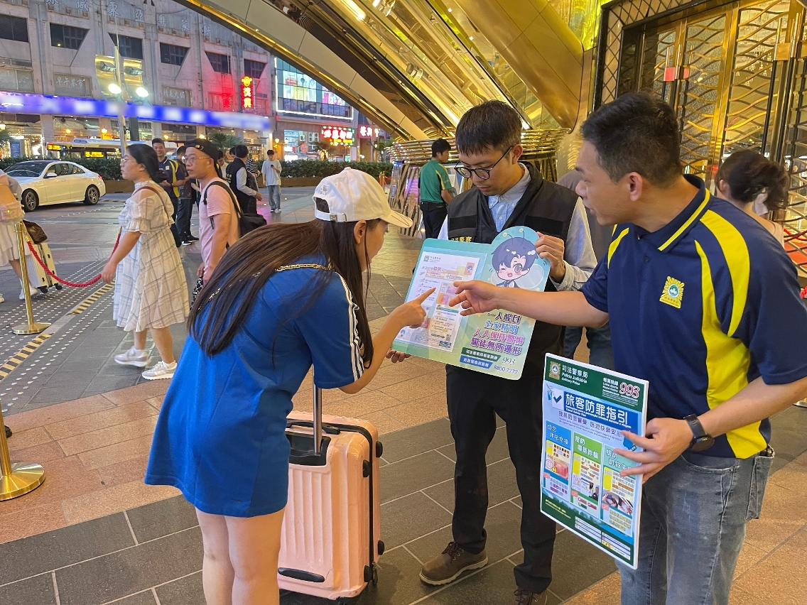 因应暑假期间访澳旅客增多,司法警察局加强面向旅客群体的防罪部署,于7月17日至28日期间派员到本澳各个口岸及酒店穿梭巴士站点展开防罪宣传,向旅客派发防罪宣传单张并讲解关于非法兑换货币、电讯诈骗及盗抢犯罪等防罪资讯及风险提示,务求提升旅客的防罪警觉及能力,免受不法侵害。
