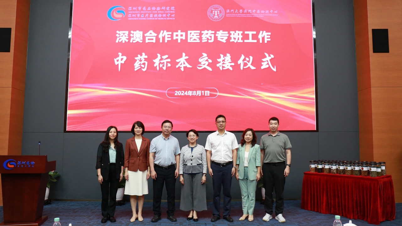 深圳市药品检验研究院副院长王晓炜、总检验师王淑红,澳大澳门中药检测中心主任助理、质量负责人湛社霞等亦出席了交接仪式。