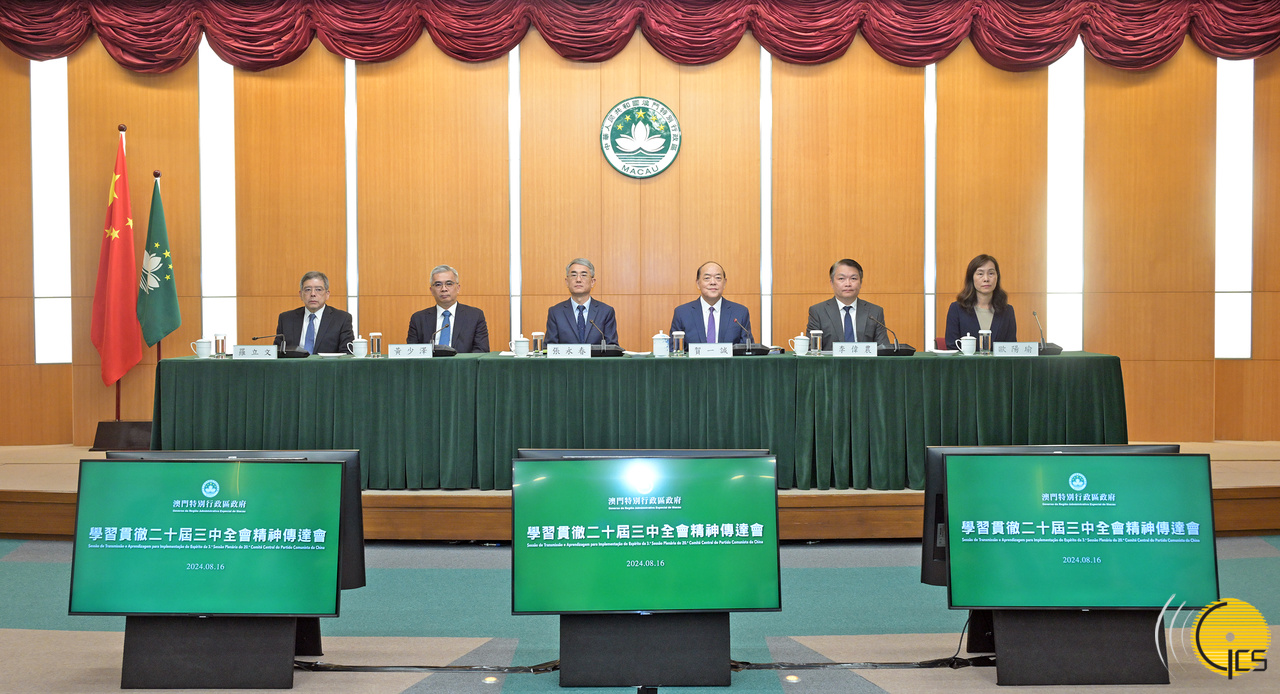 行政长官贺一诚今(16)日下午在政府总部主持召开澳门特区政府学习贯彻二十届三中全会精神传达会,全体主要官员及办公室主任、约70个部门局级领导全部出席。行政长官高度重视、亲自带领与会各级官员认真学习领会三中全会精神,并作出重要讲话。五位司长亦分别作出分享发言。