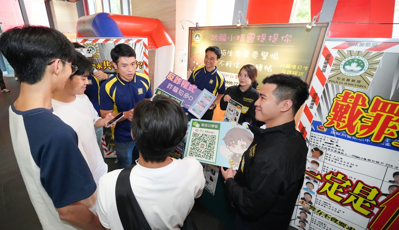 此外,司警局派员参加澳门理工大学于9月2日至6日举办的“防骗警讯周”活动,于校园内设置防骗宣传摊位,以及进入课室直接面向学生进行具针对性的防骗宣传,讲解最新的电讯网络诈骗作案手法和预防方法,并即场解答各项关于防骗的疑问,藉着互动交流加强高校学生对相关骗案的认识,以及提高他们的防骗警觉性和识别骗案能力。另外,澳门理工大学学生代表将参观司警局总部大楼,进一步增进对司警局职能、执法和社区警务工作的瞭解,从而鼓励他们参与警校合作共同防罪灭罪。