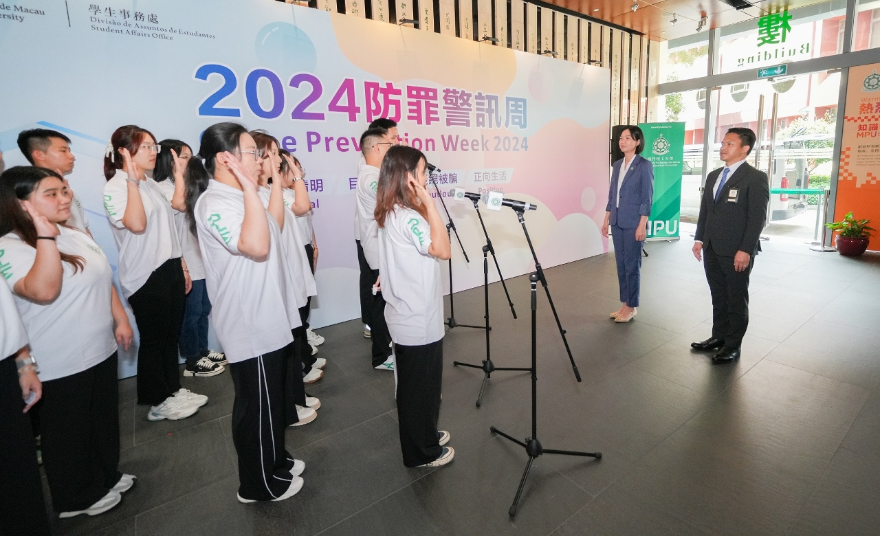 仪式在澳门理工大学明德楼大堂举行,由澳门理工大学李雁莲副校长和司法警察局苏兆强副局长共同主礼,在一众嘉宾、师长和同学的见证下,20位澳门理工大学学生进行庄严宣誓,承诺肩负起“防骗大使”的职责,谨守法律,以身作则,并以理智思维和积极态度在校园推行防骗宣传工作,与师长和同学们携手共筑校园安全网络。其后李雁莲校长及苏兆强副局长颁发“防骗大使”委任状,并勉励他们自强不息,努力成为青年群体的防骗楷模,既要不断提高自身的防骗水平,亦要主动发挥同辈间的正面影响力,在校园内营造积极反诈的氛围,带动同学正视防骗工作,为守护校园安全贡献力量。