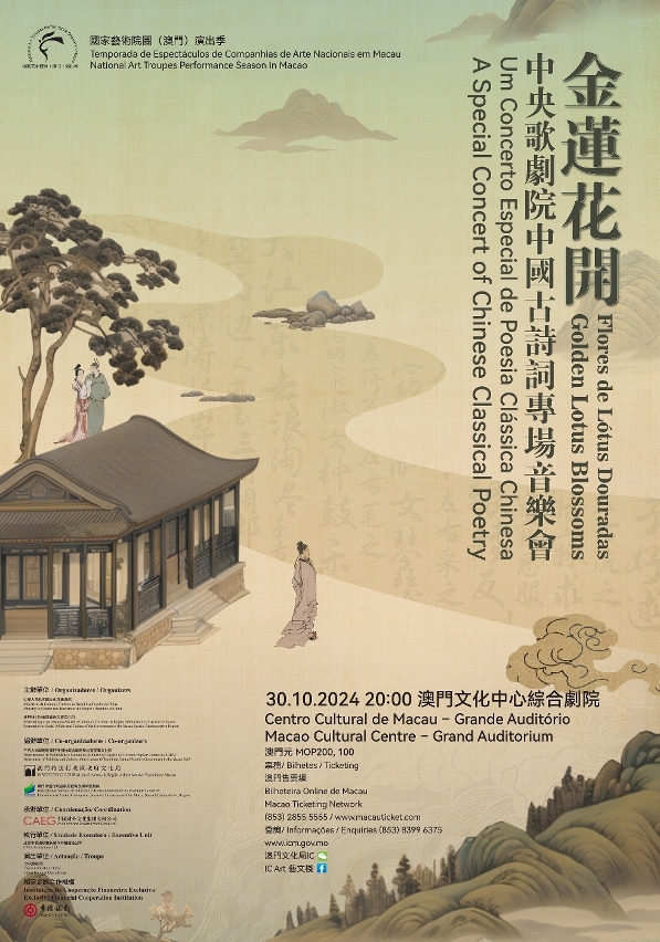 由中华人民共和国文化和旅游部、澳门特别行政区政府社会文化司联合主办,2024年国家艺术院团(澳门)演出季,将由福建省梨园戏传承中心及中央歌剧院两大院团,于10月22至31日期间在澳门文化中心献上四场演出,分别为新编梨园戏《董生与李氏》及《金莲花开》系列音乐会,让澳门观众畅享国家级艺术盛宴。门票将于本周日(10月13日)起在澳门售票网公开发售。