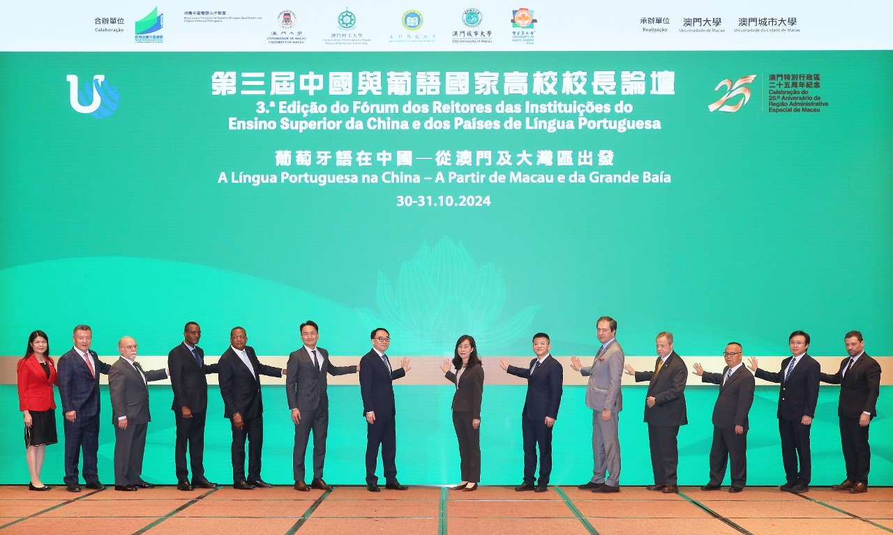教育及青年发展局与澳门大学、澳门理工大学、澳门科技大学、澳门城市大学及圣若瑟大学组成的“培养中葡双语人才联盟”于10月30日至31日合办第三届中国与葡语国家高校校长论坛。44所来自中国内地、澳门,以及葡语国家的高校参与,是次活动邀请了葡萄牙、安哥拉、巴西、几内亚比绍、赤道几内亚、莫桑比克、东帝汶等超过40位葡语国家高校校长及代表齐聚澳门,与内地及澳门高校的校长及代表围绕论坛主题“葡萄牙语在中国──从澳门及大湾区出发”进行探讨,促进彼此的交流与合作。