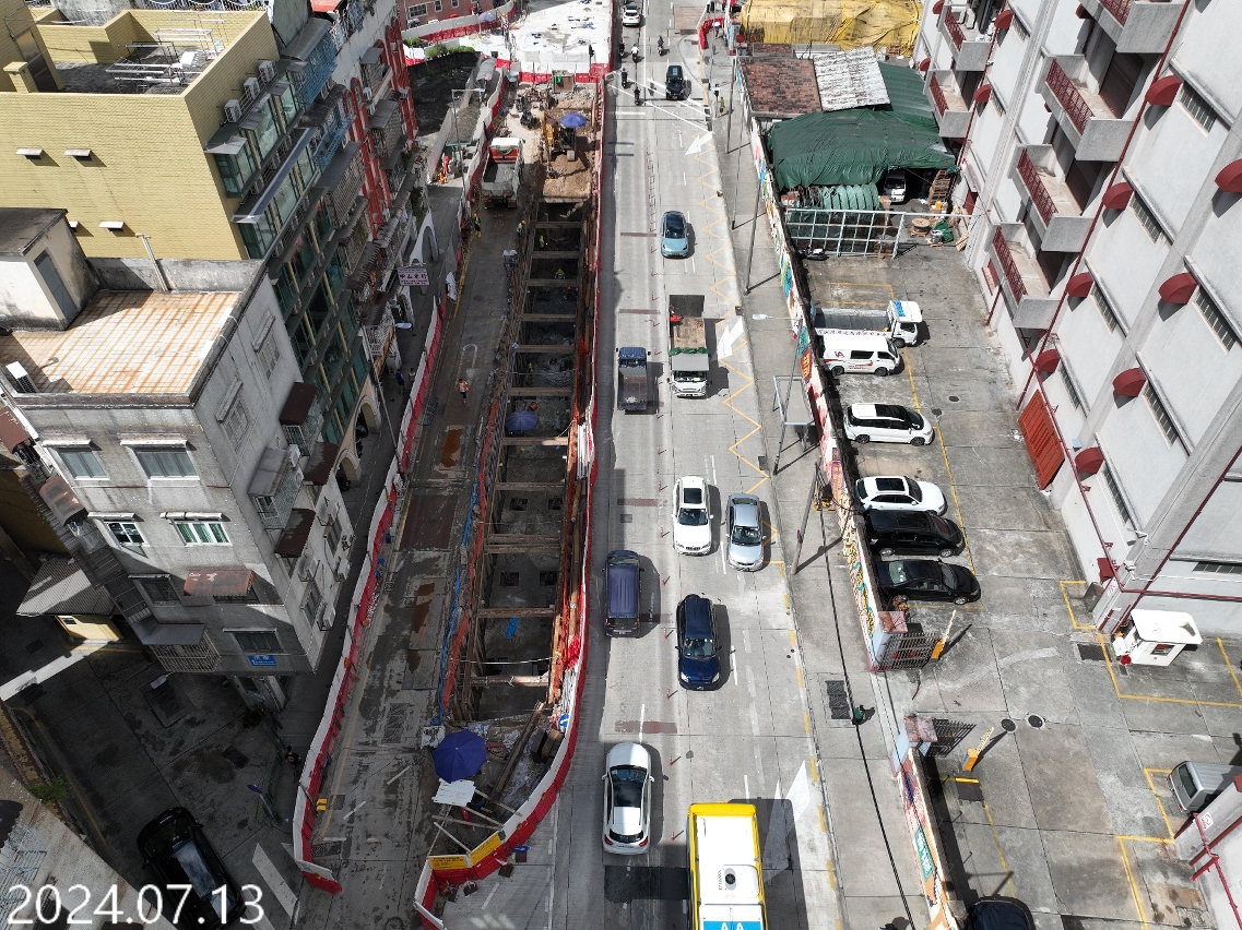 工程透过分段施工和局部围蔽方式,确保车辆通行。此外,也要求承建单位定期对施工所影响区域的排水系统进行检查及增加泵水设施,减低在施工期间因风雨季引发水浸情况。