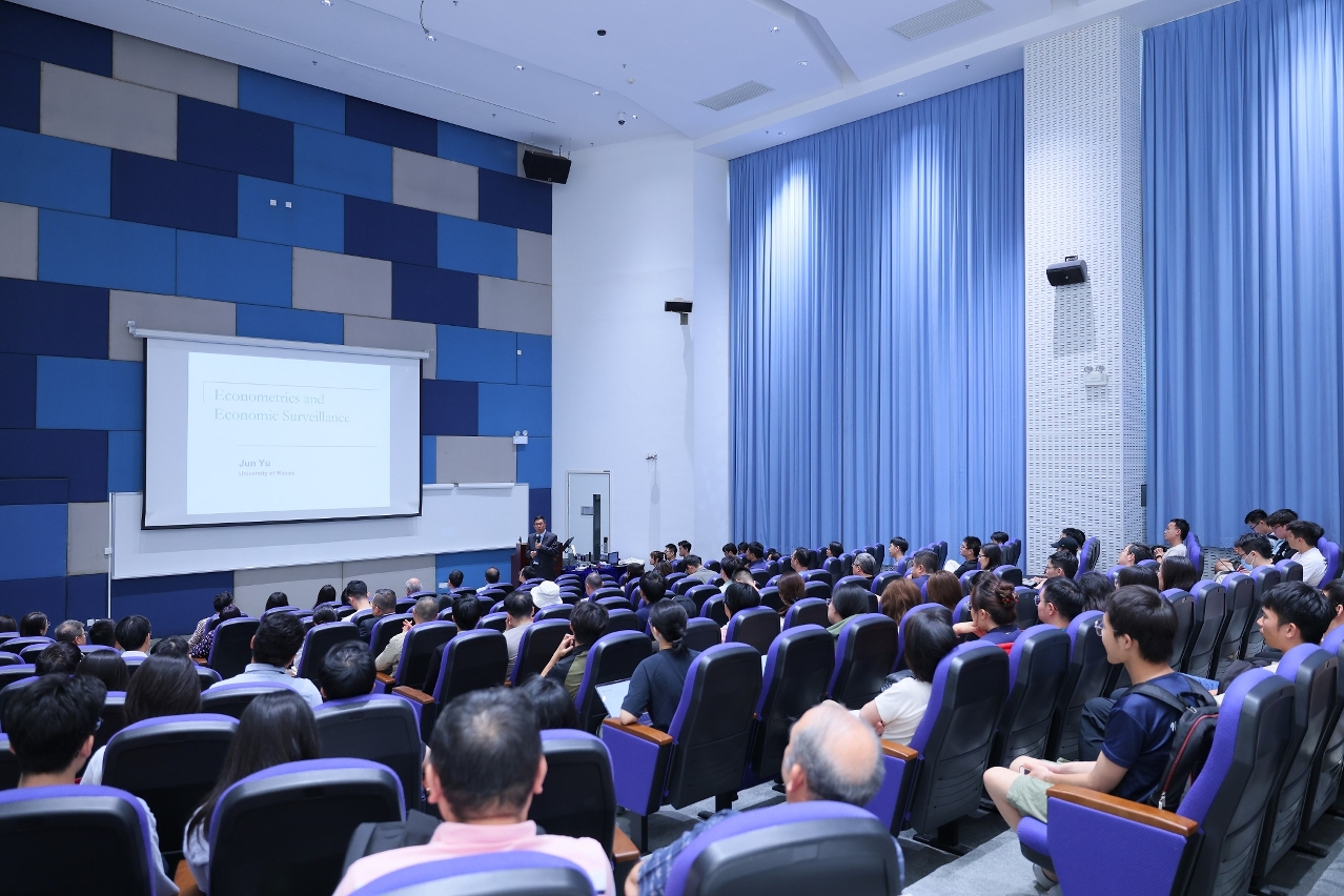 讲座上,余俊解释了投机泡沫的重要性,强调计量经济学工具在经济监测中的关键作用,并展示了这些工具在识别和管理金融泡沫方面的实际应用。他介绍了递归方法、单位根检验等计量经济学技术,并通过各种数据集的泡沫检测方法,证明这些方法在检测泡沫方面的有效性。余俊亦分享了应对更复杂泡沫情景的最新方法论进展,以识别和防止金融危机的发生。在问答及交流环节,余俊与参与者交流互动,讨论气氛热烈。