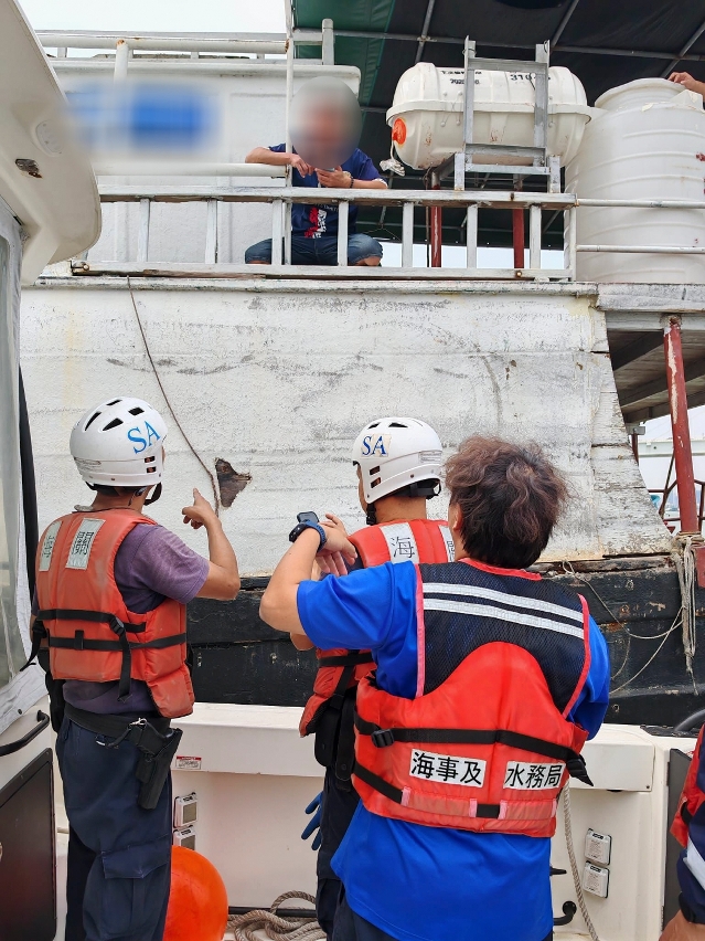 海事局透过澳门智慧海事系统和海上监控视频确认𦘦事渔船航行轨迹,并证实该船曾经碰撞嘉乐庇大桥护桥栏。海事局正调查事故原因,对渔船船员进行笔录,并跟进护桥栏损毁情况。肇事渔船流出少量油污,海事局已即时按紧急预案,采用吸油、隔油物资包围渔船,防止油污扩散,并加紧进行油污清理工作,同时在现场海面设置临时警示标志及播放临时航海通告,提醒往来船只注意通航安全。