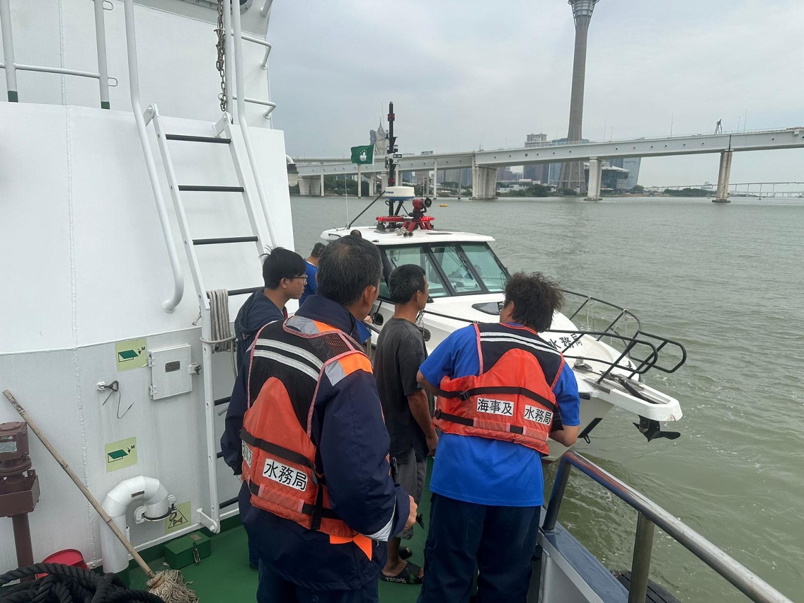 海事局透过澳门智慧海事系统和海上监控视频确认𦘦事渔船航行轨迹,并证实该船曾经碰撞嘉乐庇大桥护桥栏。海事局正调查事故原因,对渔船船员进行笔录,并跟进护桥栏损毁情况。肇事渔船流出少量油污,海事局已即时按紧急预案,采用吸油、隔油物资包围渔船,防止油污扩散,并加紧进行油污清理工作,同时在现场海面设置临时警示标志及播放临时航海通告,提醒往来船只注意通航安全。