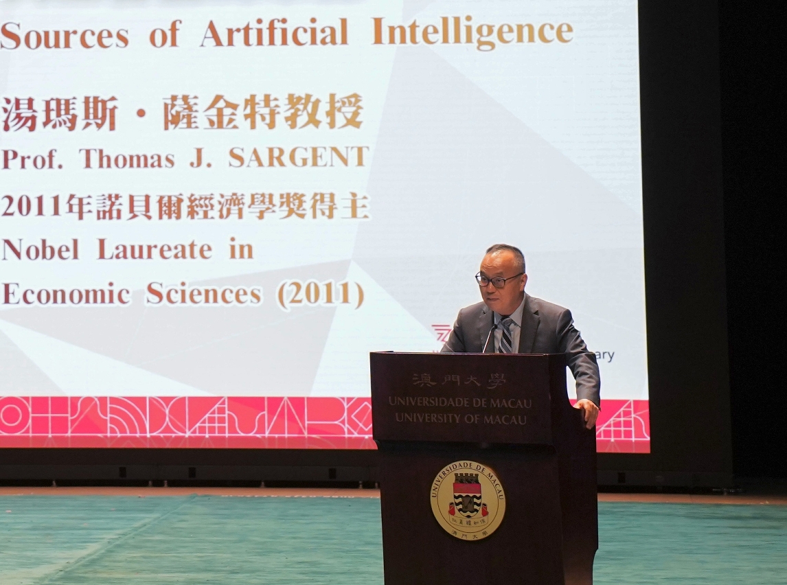 澳门大学工商管理学院今(5)日举行“诺贝尔奖得主讲座”,由诺贝尔经济学奖得主汤玛斯‧萨金特以“人工智能的来源”为题发表演说,探讨人工智能的起源与发展。是次讲座由澳门大学发展基金会赞助,吸引逾众多师生、业界人士、社会贤达及公众参与。
