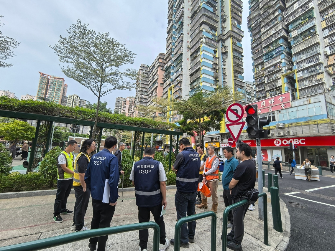 由于夹心房屋工程范围毗邻区内楼龄较大的楼宇,为确保施工过程中周边建筑物的安全,本局已聘请第三方机构对周边楼宇及道路进行全面监测,已展开前期楼宇状况勘察工作,包括对邻近的楼宇进行3D雷射扫瞄、外墙表面状况拍摄记录以及安装楼宇沉降、振动和倾斜度的监测设备等。项目的基础及地库工程将于近日进行工程委托,并随即围敝工程范围及动工,临时休憩区将停止使用。