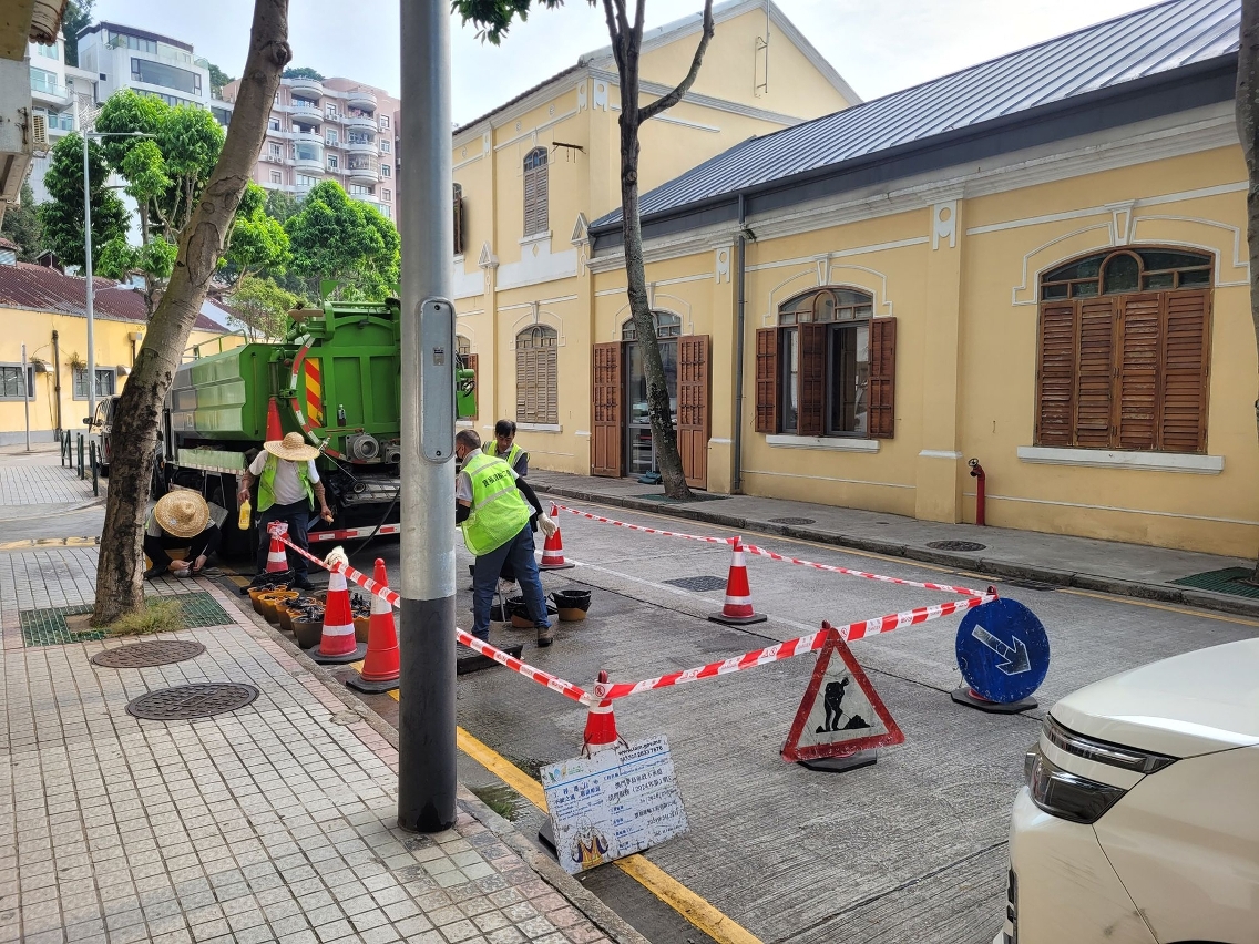 本澳受强烈热带风暴“万宜”影响,天气渐趋不稳,市政署加强渠道防范工作,加派人员检查下水道、泵房,并进行清理,调派泵车加强疏通水浸易发点的渠道,确保渠道畅通。同时,检查及修剪构成安全隐患的树木或断枝,排除安全风险。