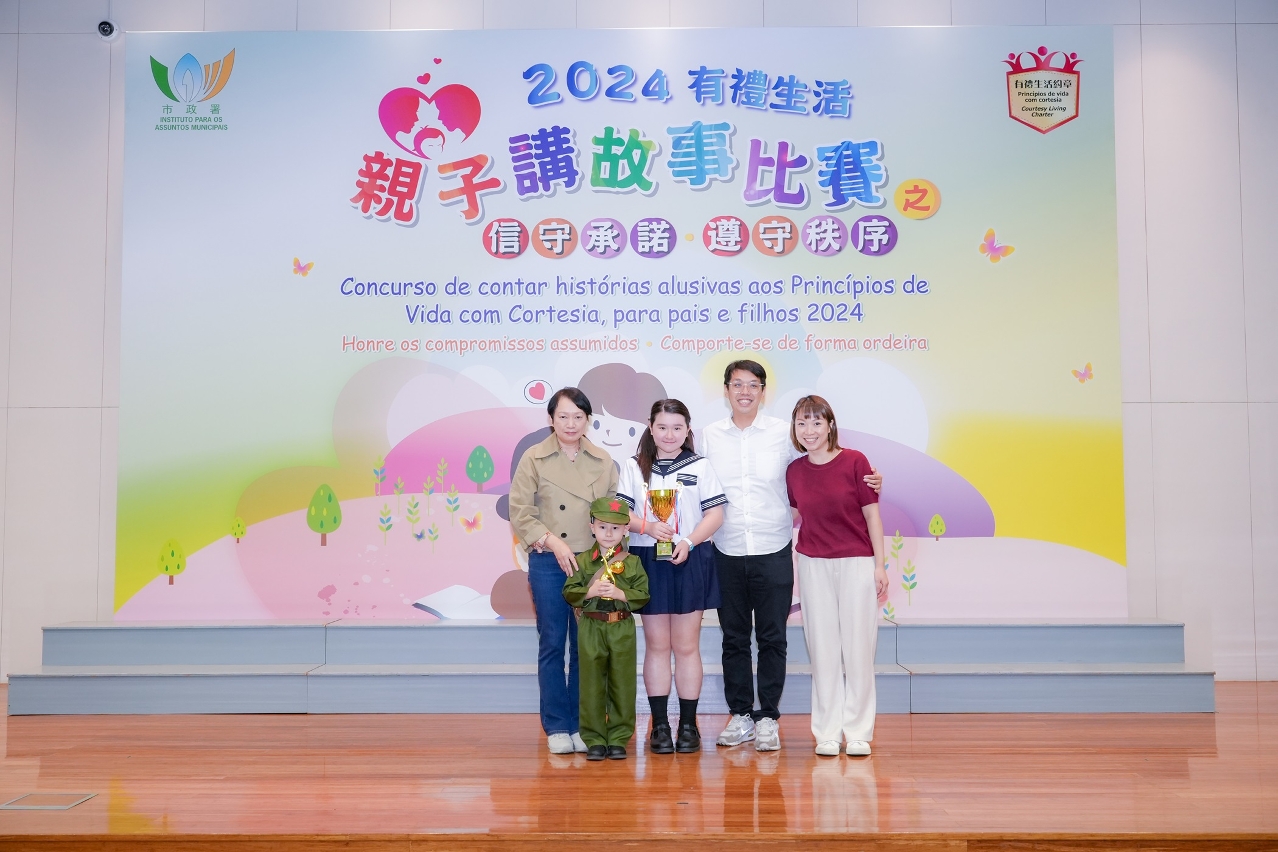 由市政署举办的“2024有礼生活亲子讲故事比赛之信守承诺、遵守秩序”早前在公民教育资源中心顺利举行,是次比赛以《有礼生活约章》内“信守承诺”和“遵守秩序”为故事主题。来自全澳13间学校的38名学生及家长,组成14支队伍参加比赛,施展才华。