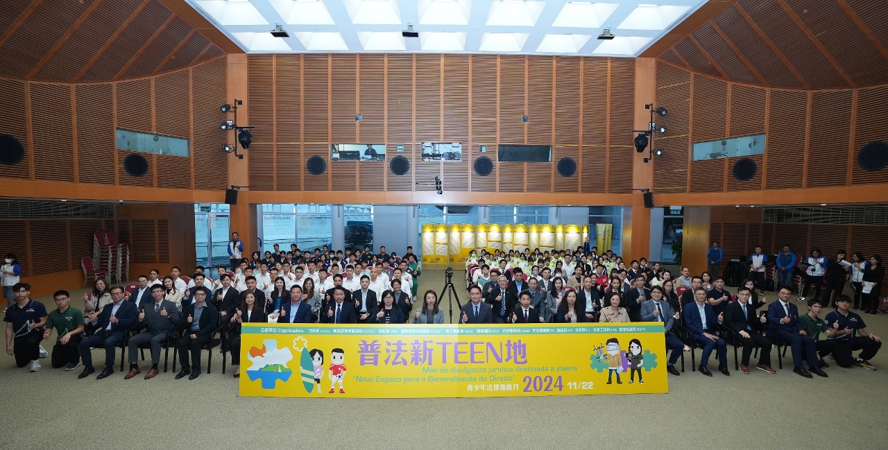 为持续向青少年推广法律知识,增强青少年知法和守法意识,“青年政策”跨部门跟进小组成员——法务局、市政署、经济及科技发展局、劳工事务局、警察总局、治安警察局、司法警察局、教育及青年发展局、文化局、卫生局、社会工作局及环境保护局共12个政府部门,于2024年9月至11月合办了“普法新TEEN地”青少年法律推广月。本年组织了多项普法专题活动,活动形式包括:法律讲座、线上问答游戏、亲子工作坊、法制课程、校园巡回讲座、巡回展板展览、写作奖励计划及宣传推广活动等,共约127,825人次参加有关活动,今年活动的参加对象已扩展至本澳高等院校在读的本科学生,以及继续安排社会体验活动到访珠海及横琴参观交流,覆盖层面更广泛,内容更丰富。