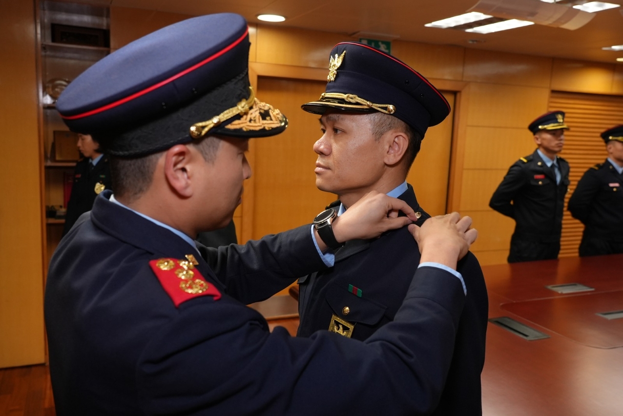 于2024年12月11日,在消防局总部暨西湾湖行动站举行副消防区长晋升仪式,仪式由消防局局长 梁毓森 消防总监主持,副局长 林俊生 副消防总监、副局长 张智宏 副消防总监以及各部门主管级官员出席。晋升仪式中,各领导分别为获晋升的人员戴上新肩章,并祝贺和勉励他们在职业生涯的新阶段有更好的表现、克尽己任,继续为市民提供优质的服务。