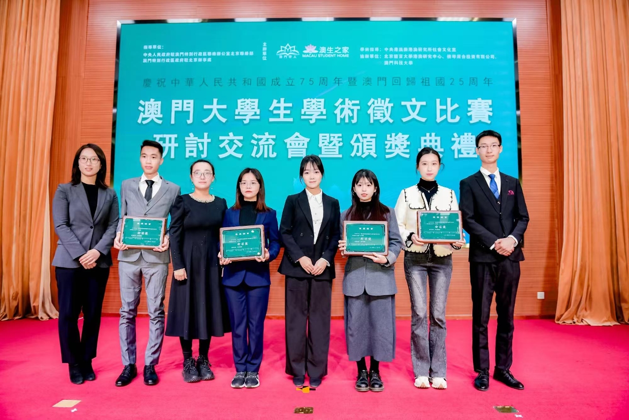 由澳门大学教育学院本科生林祖怡、叶静,中华医药研究院博士生薛冬梅共同撰写的论文《“一国两制”下跨文化社群体验式教学参与的影响因素及模型构建——以澳门大学书院为例》于“庆祝澳门回归祖国25周年——澳门大学生学术征文比赛”获新苗奖。