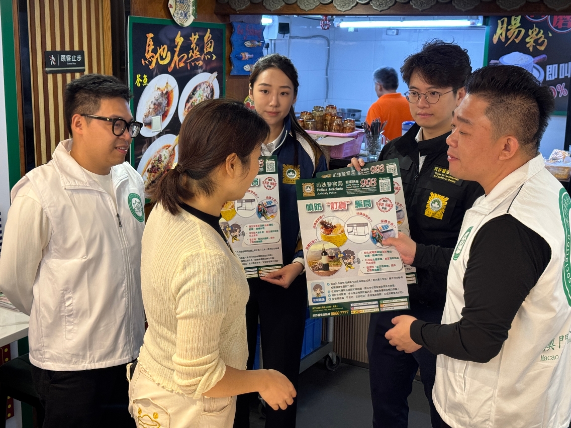 司警局联同澳门餐饮行业协会入区宣传 加强商户防骗意识