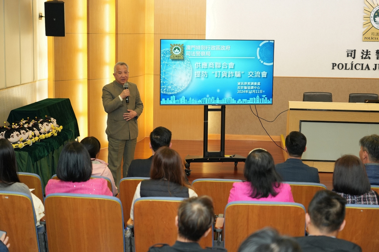 “提防订货诈骗交流会”于2024年12月11日在司法警察局举行,司警局资讯罪案调查处龙汉威处长、澳门供应商联合会李杰兴理事长联同21名不同行业的代表出席参与。交流会上,司警局资深刑侦人员结合真实案例,讲解“订货诈骗”的最新作案手法、特征及注意事项,以加强业界对“订货诈骗”手法的了解,司警局人员强调当接到陌生来电或讯息要求订购大量货品时,应提高警觉并先从相应的官方渠道查核事实,切勿急于促成交易;同时提醒商户若收到任何转帐或汇款的截图时,应小心求证有关款项是否已到帐,以免陷入诈骗陷阱。
