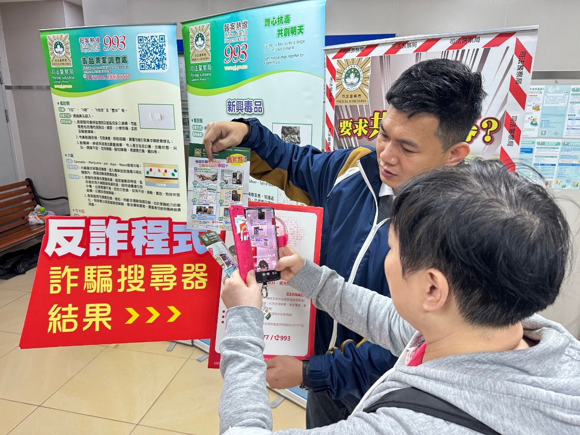 活动期间,司警局透过现场设置防罪资讯展板,向居民详细介绍毒品、电讯网络诈骗及盗窃等犯罪的最新作案手法和预防方法,并与居民进行防罪互动游戏,加深他们对防罪资讯的认识和记忆。同时,司警局人员向居民展示多款仿真毒品模型,让居民认识常见毒品的外观,并讲解如何辨识毒品,提高他们的防毒、拒毒意识;亦介绍了简单易用的防盗设备,教导居民加强家居防盗措施,免被不法分子有机可乘。