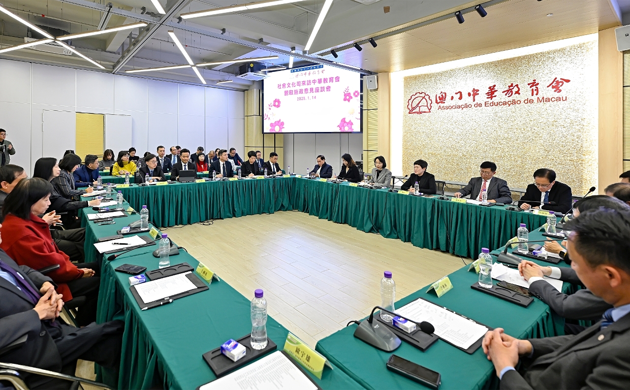 参与座谈的还有社会文化司司长办公室主任林媛、教育及青年发展局代局长黄嘉祺、文化局局长梁惠敏、体育局局长张子轩、卫生局局长罗奕龙、药物监督管理局局长蔡炳祥、社会工作局局长韩卫,以及澳门中华教育会多名副会长和副理事长。