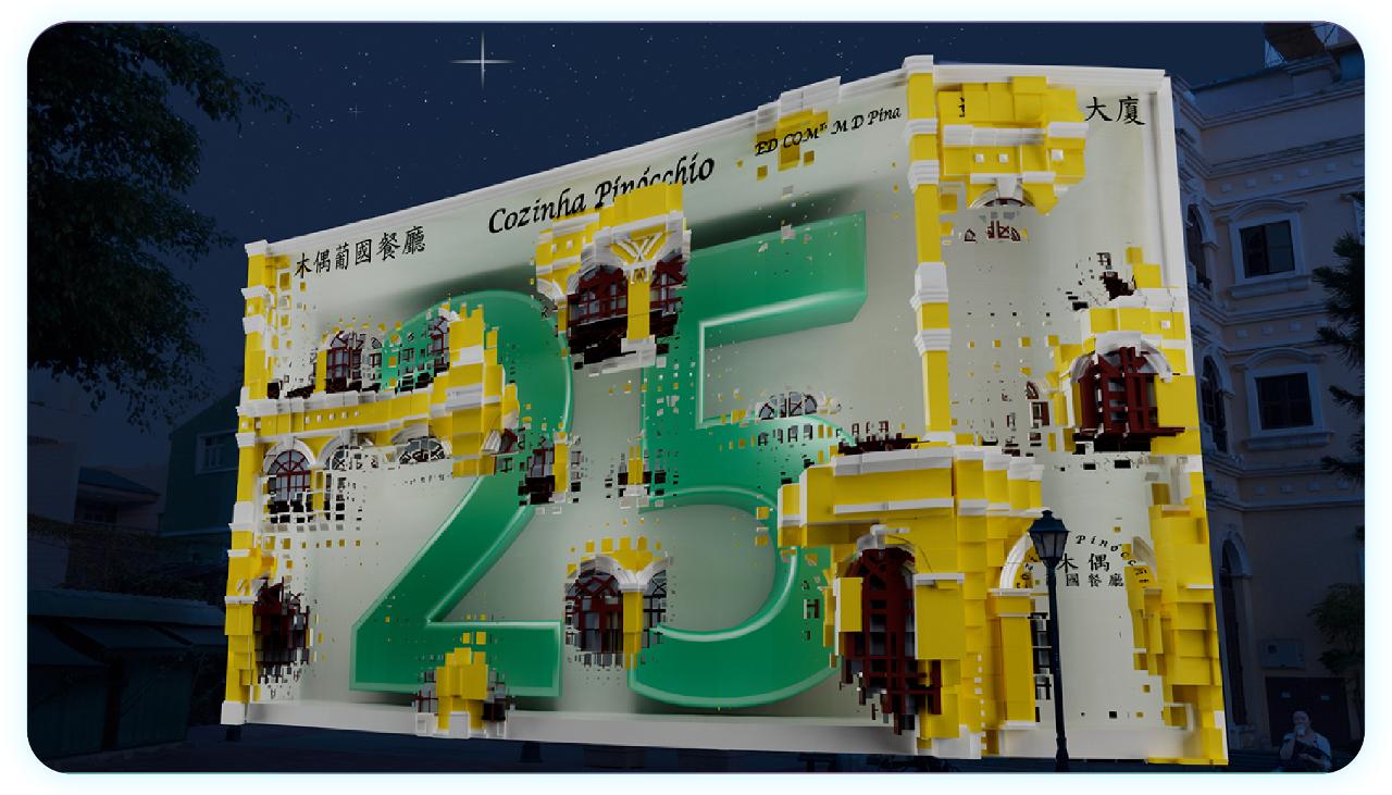 旅游局于去年(2024年)7月在澳门公开征集3D光雕表演作品,最终“双・连” 及“100 FUN”两个本地项目获选优秀作品,得以参与“2024幻彩耀濠江”。两份光雕作品分阶段在氹仔消防局前地(木偶葡国餐厅立面)上演,先前上演的“双.连”明(17日)最后一天演出,“100 FUN” 接续上演。