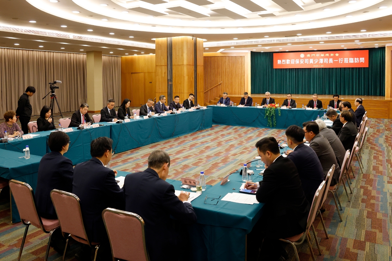 保安司司长黄少泽今(20)日继续就编制保安范畴本年度施政方针听取各社团意见,下午拜访澳门中华总商会并举行座谈会。