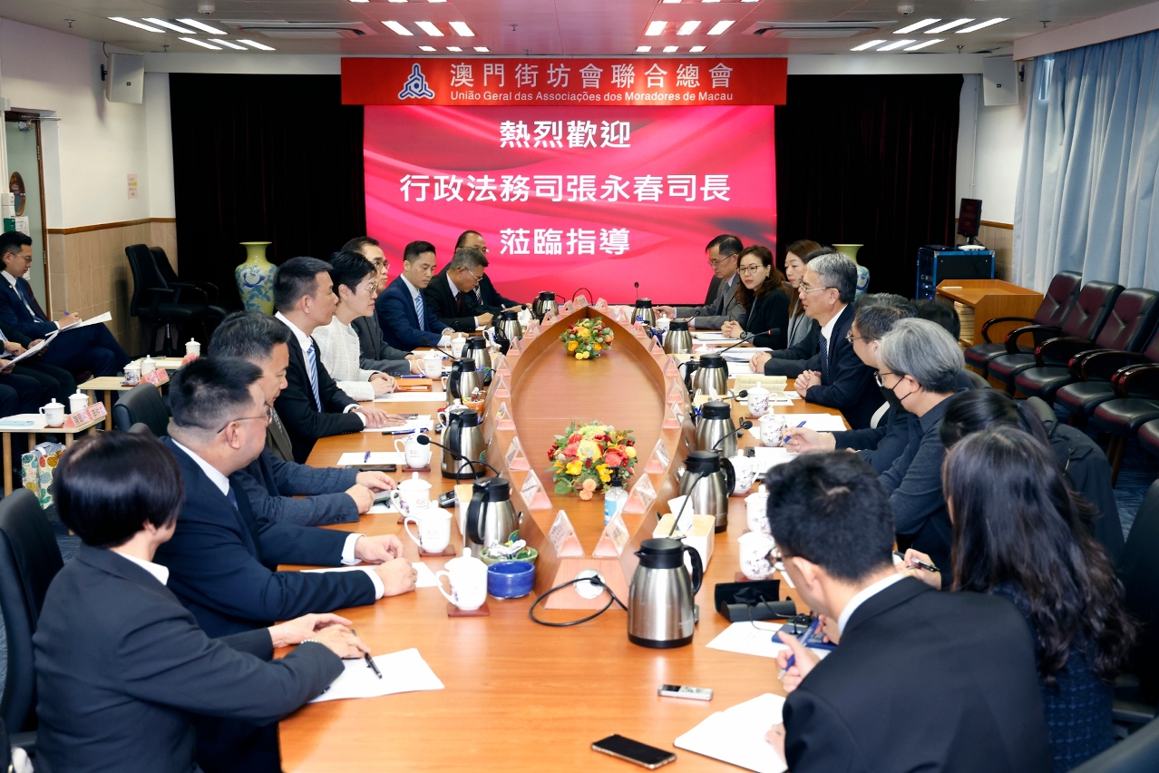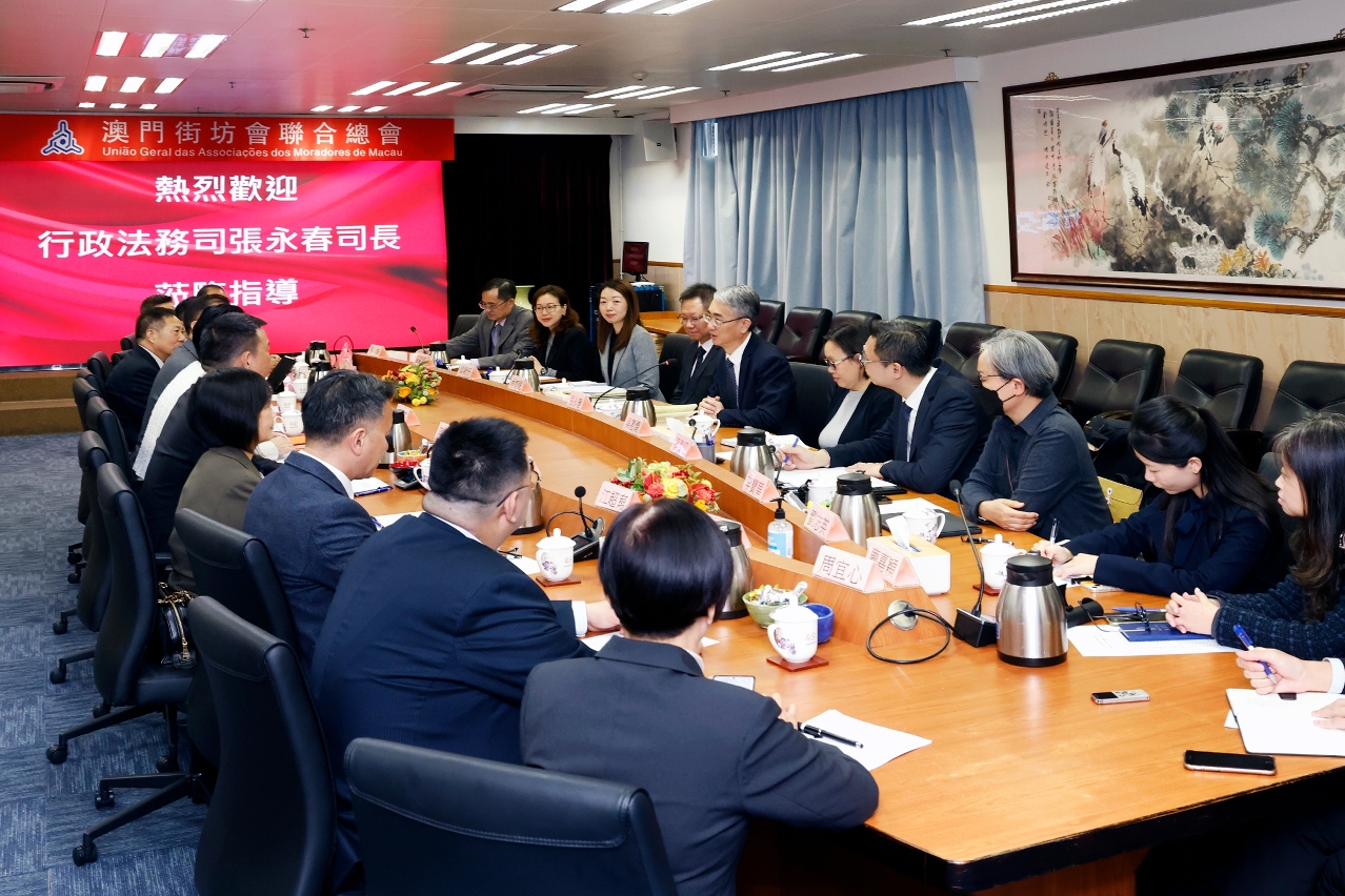 行政法务司司长张永春今(21)日到访澳门街坊会联合总会并举行座谈,就编制行政法务范畴本年度施政方针听取该会的意见和建议。