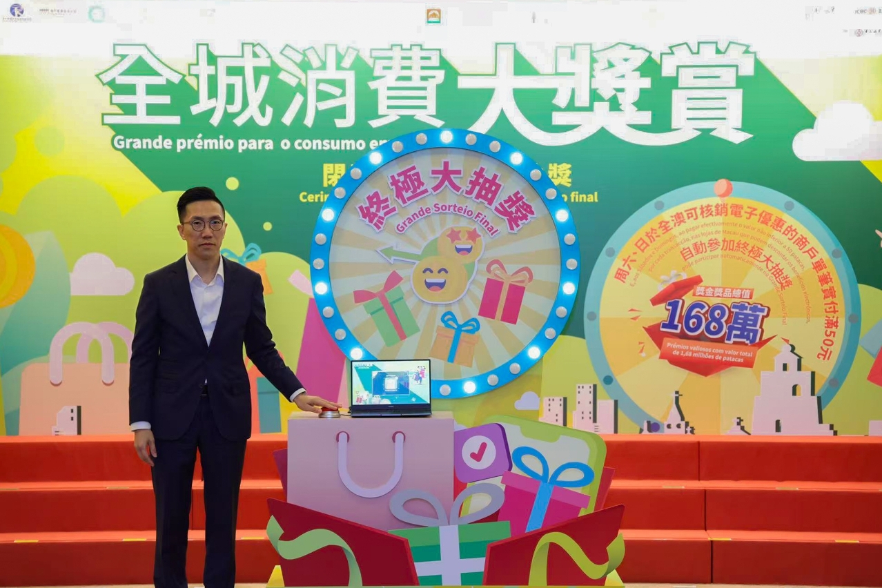 由特区政府联同澳门中华总商会于去年合办为期13周的“全城消费大奖赏”大型促消费活动今(21)日于澳门中华总商会何贤先生纪念堂举行闭幕式及终极大抽奖。
