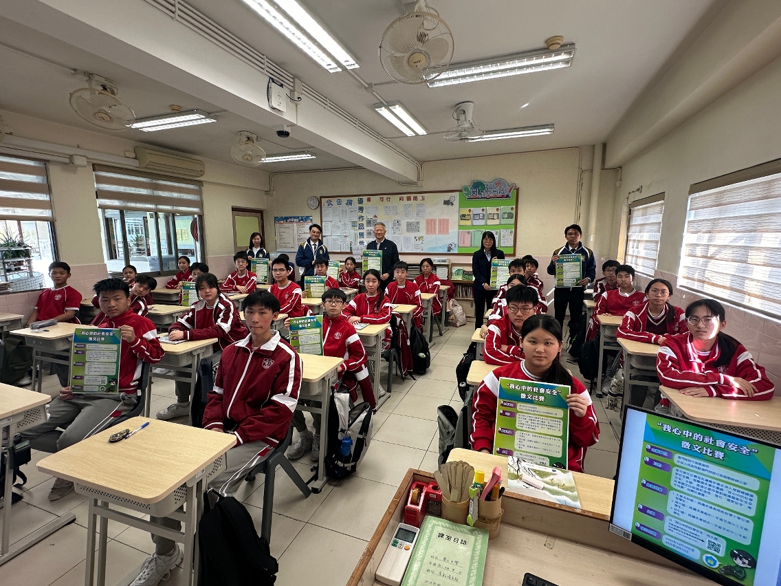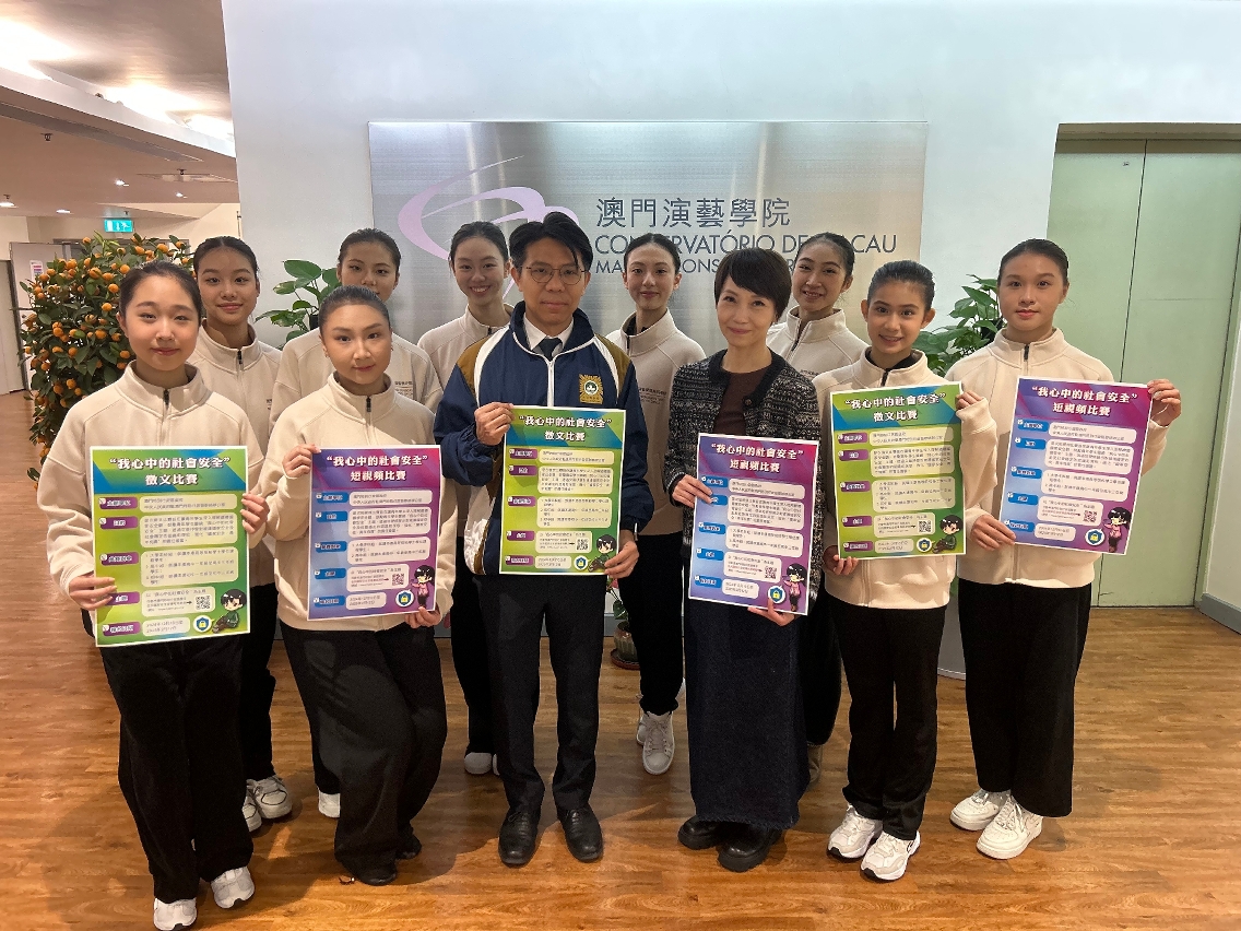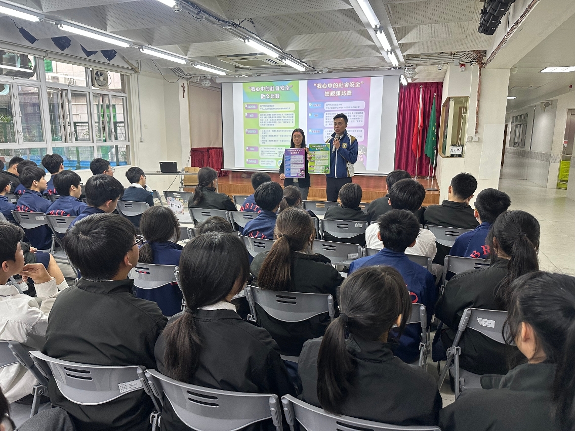 由澳门特别行政区政府及中央人民政府驻澳门特别行政区联络办公室联合举办的“我心中的社会安全”征文及短视频比赛现正接受报名,司法警察局由2024年12月上旬开始持续派员走进校园开展相关宣传推广工作,鼓励学生积极参加。