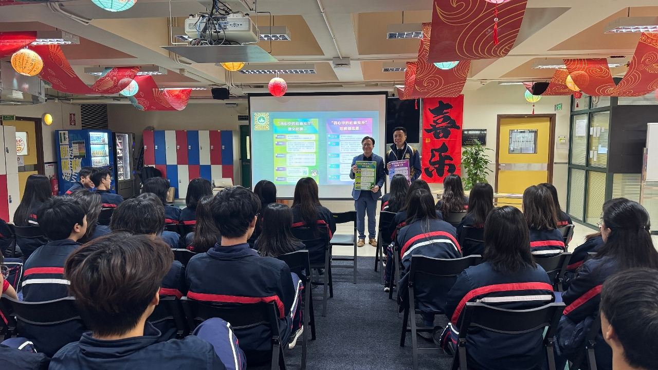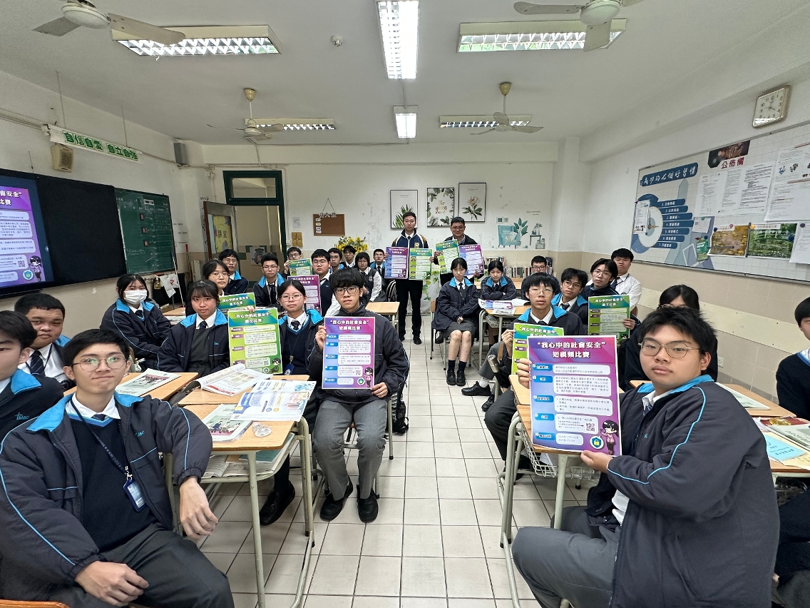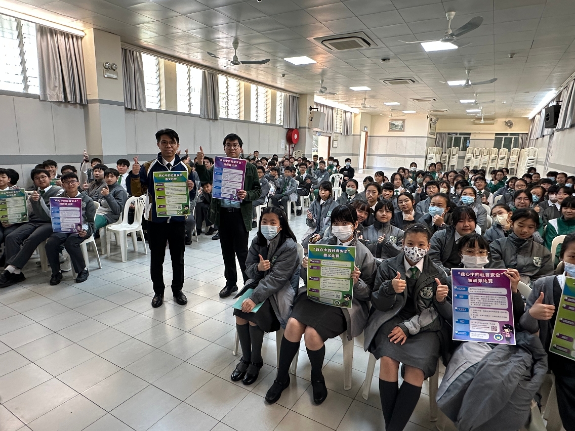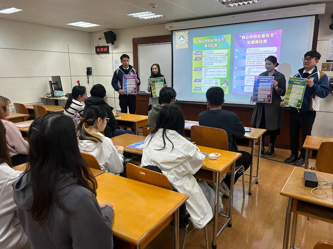 由澳门特别行政区政府及中央人民政府驻澳门特别行政区联络办公室联合举办的“我心中的社会安全”征文及短视频比赛现正接受报名,司法警察局由2024年12月上旬开始持续派员走进校园开展相关宣传推广工作,鼓励学生积极参加。